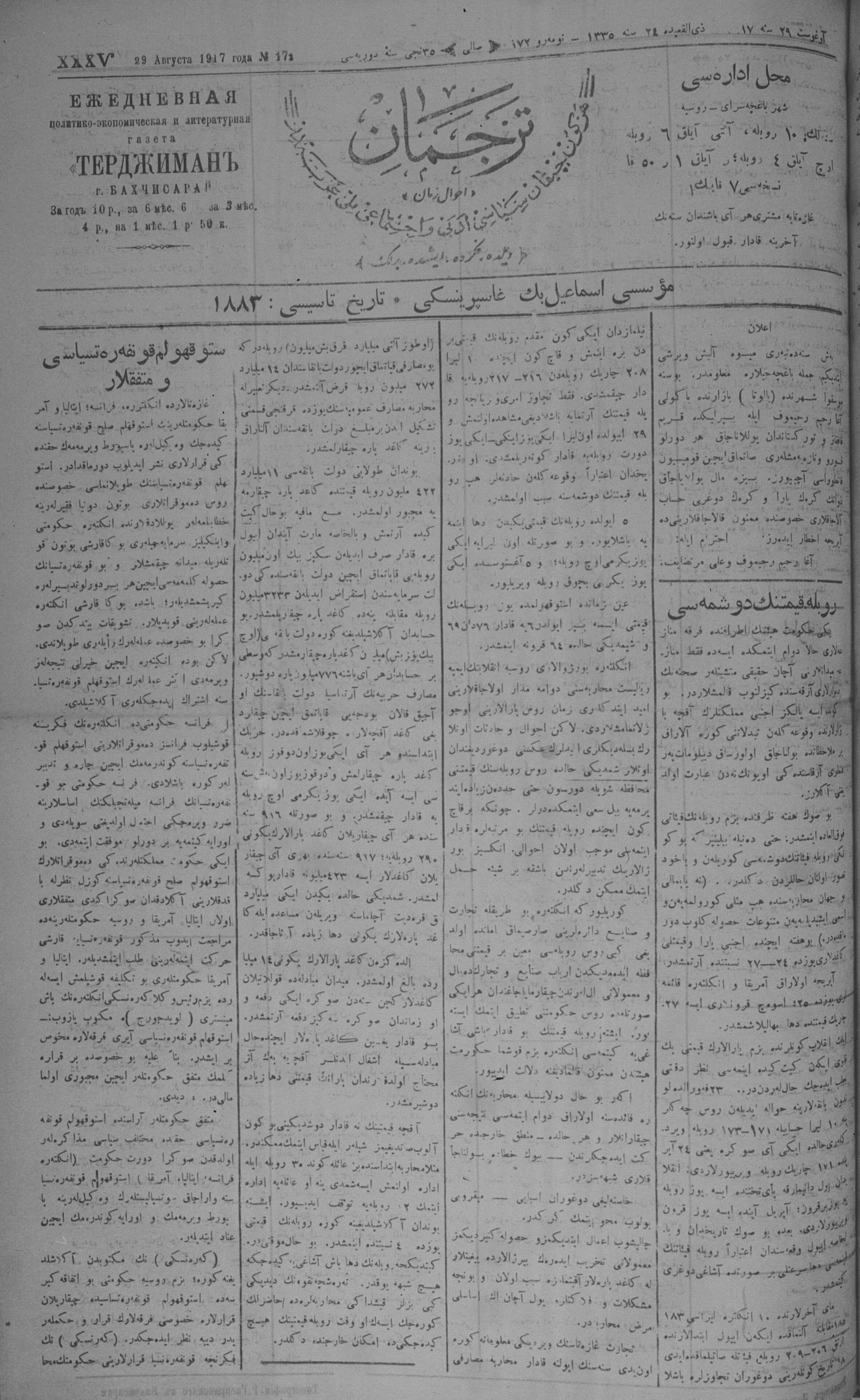Tercüman, 29 August 1917 Year 35 No 172