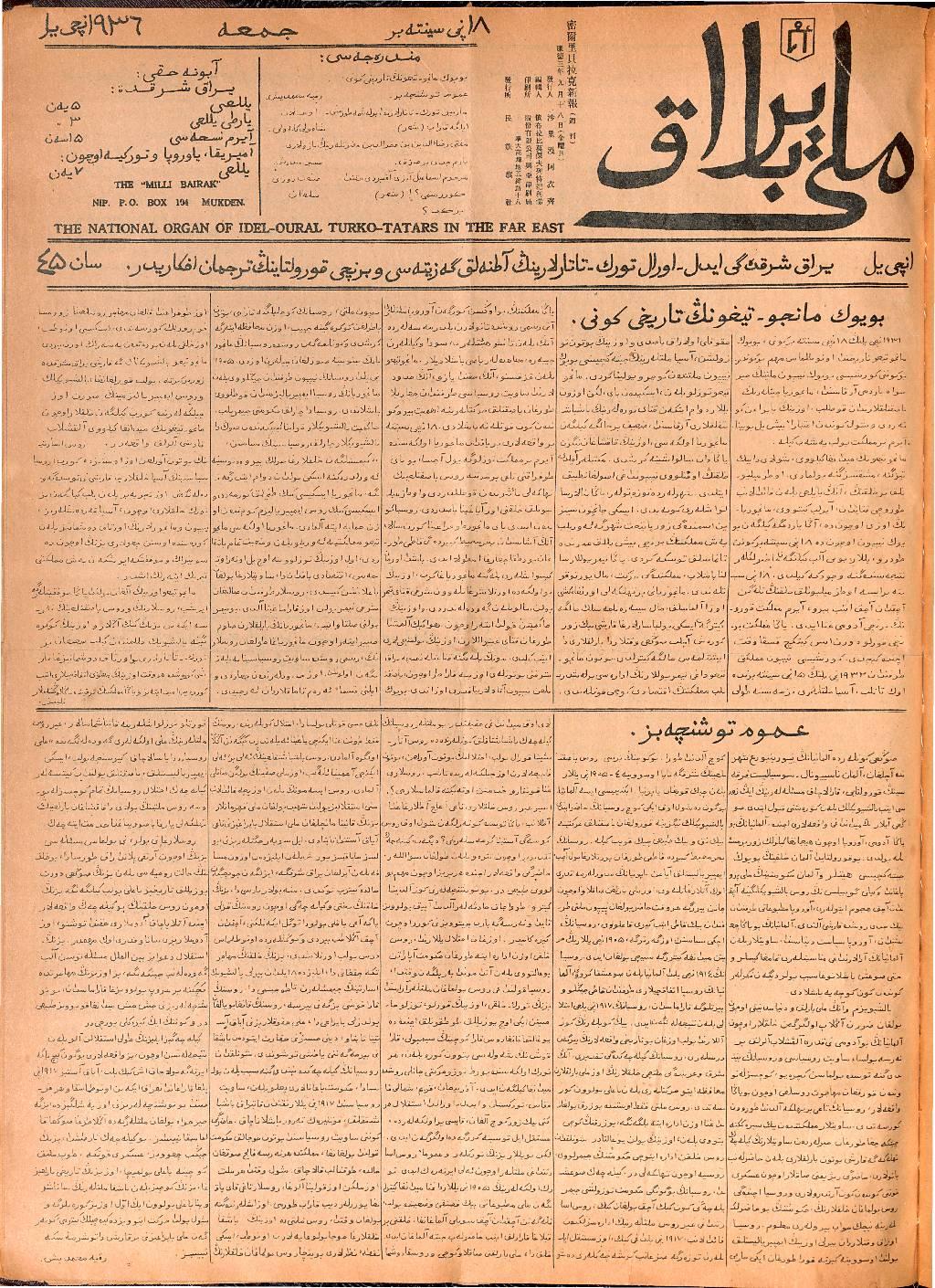 Milli Bayrak, 18 September 1936 Year 1 No 45