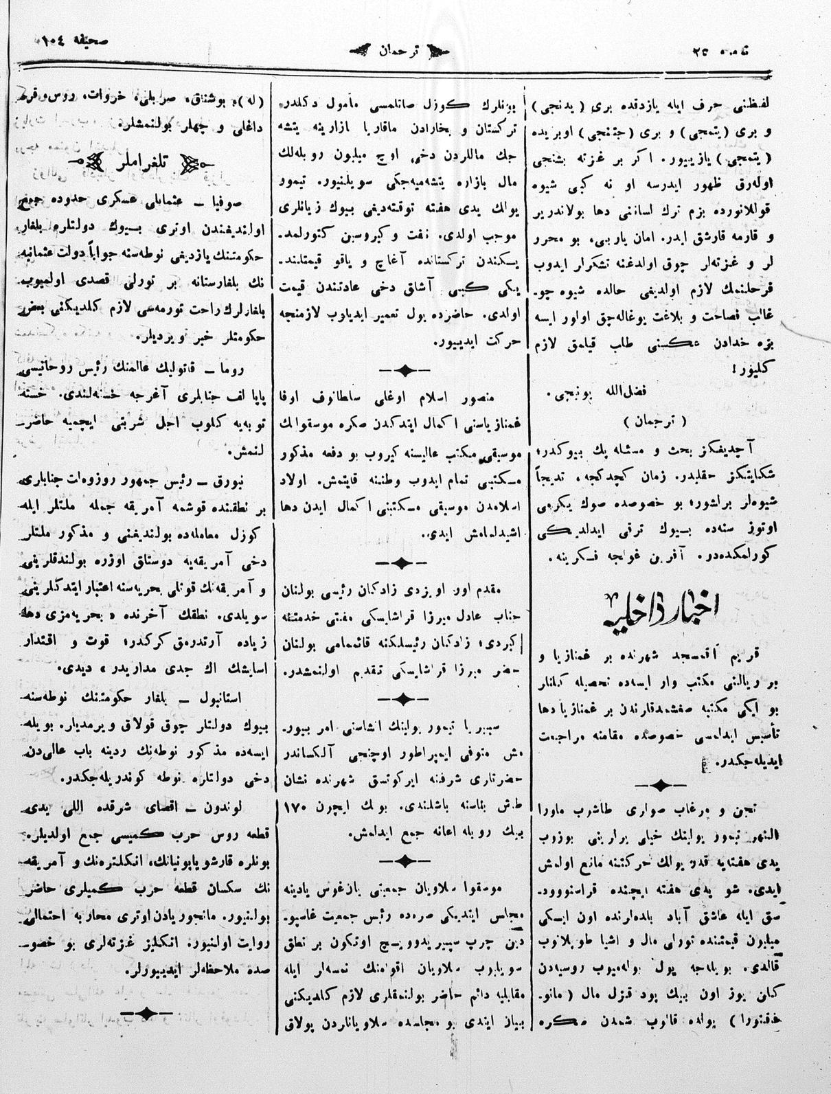 The name of the newspaper changed to Tercüman-ı Ahval-i Zaman in 1905. In 1909, it started to be published under its first name, Tercüman.