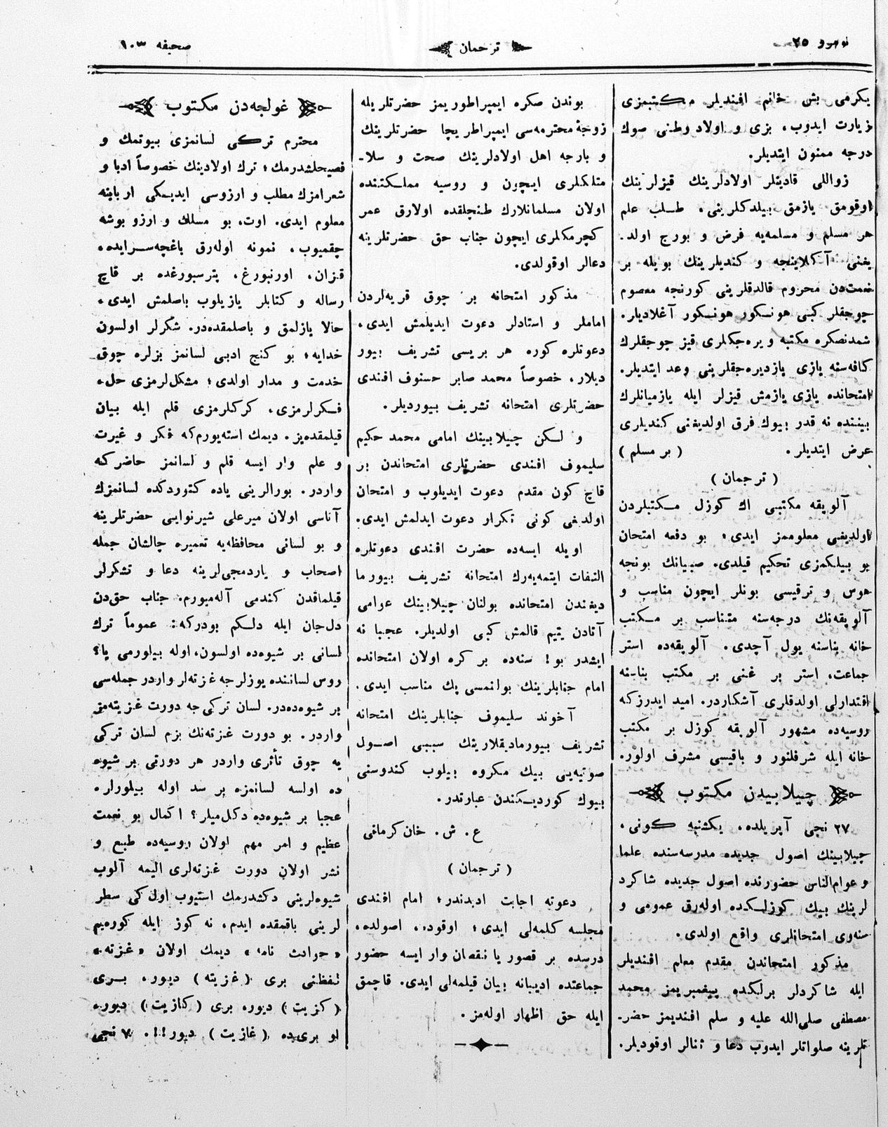 Different spellings of Tercüman: Terdzhiman, Terjuman, Perevodçik and Terjiman.