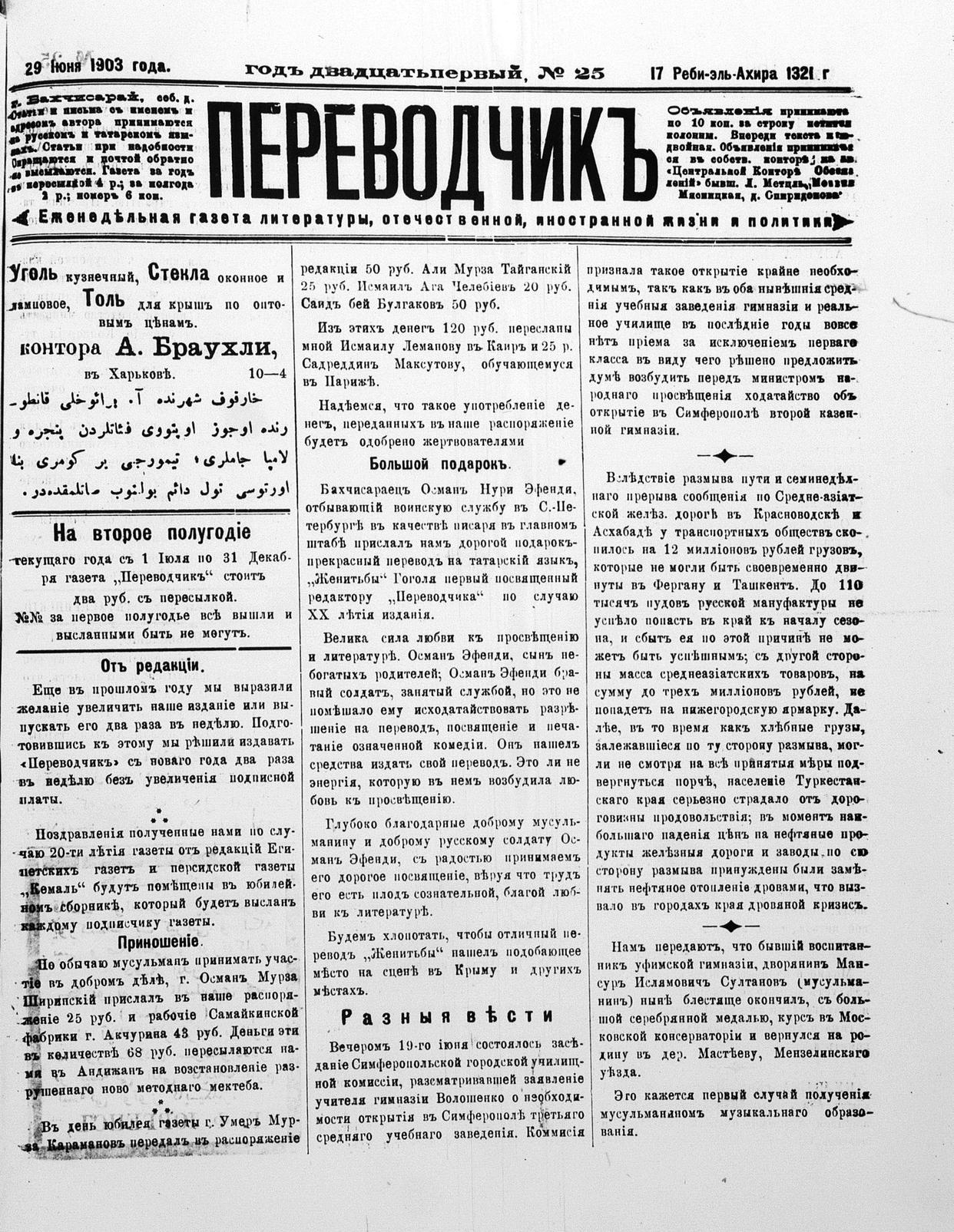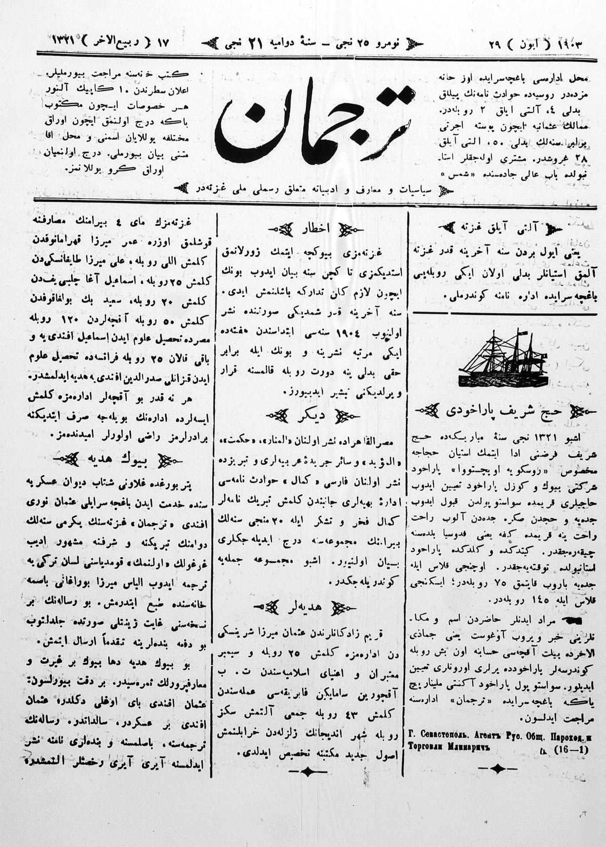 Turkish-Russian newspaper published in Crimea by İsmail Gaspıralı.