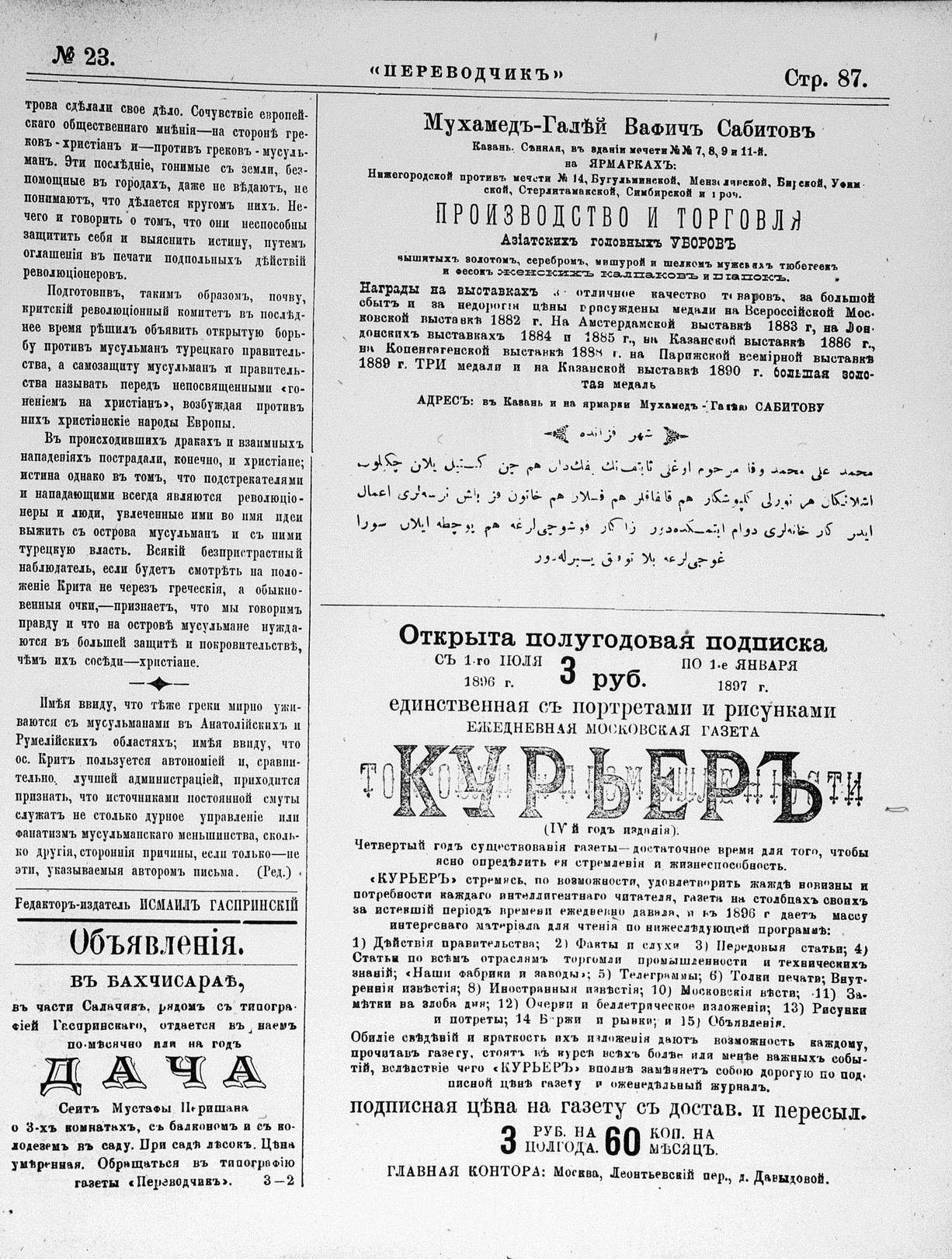 Tercüman, 16 June 1896 Year 14 No 23