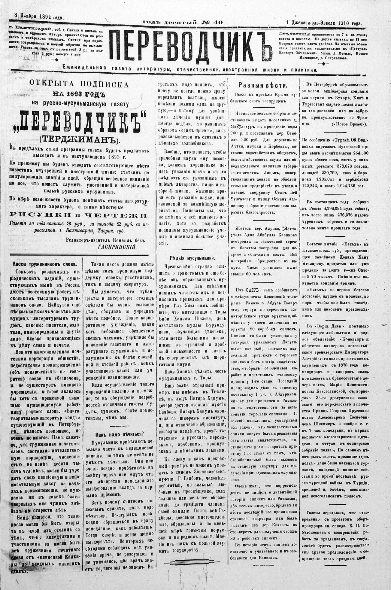 Turkish-Russian newspaper published in Crimea by İsmail Gaspıralı.