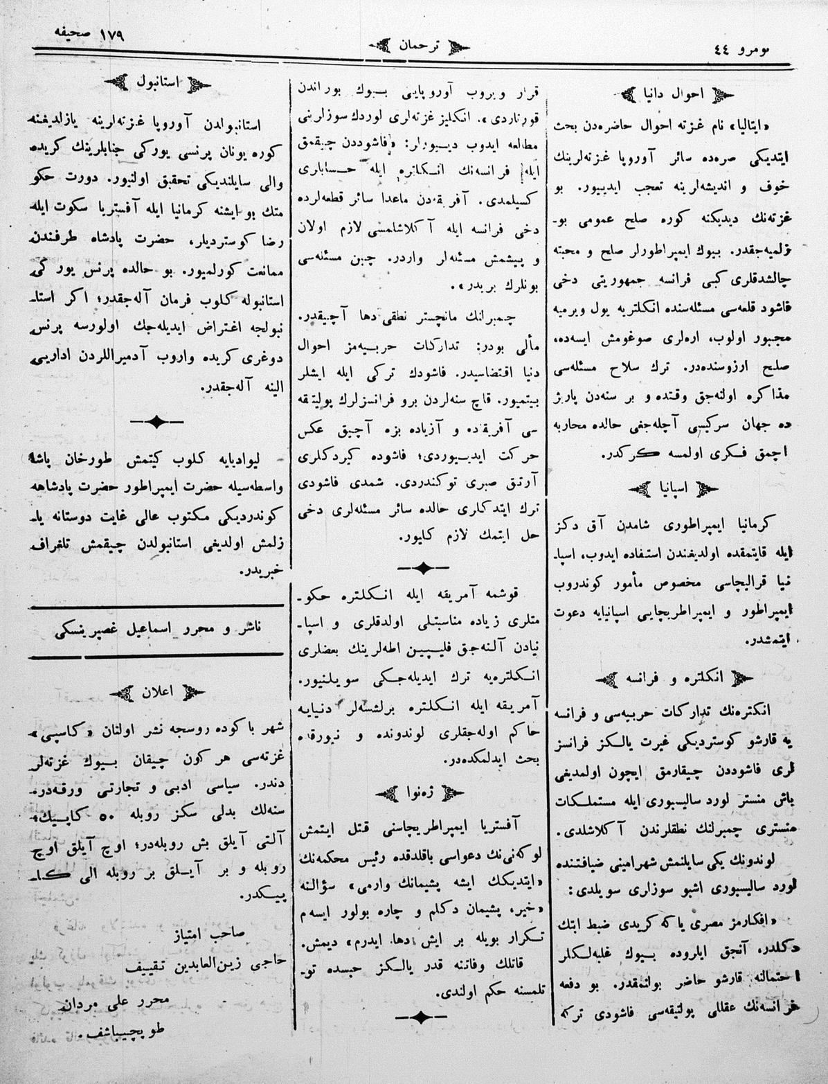 The name of the newspaper changed to Tercüman-ı Ahval-i Zaman in 1905. In 1909, it started to be published under its first name, Tercüman.