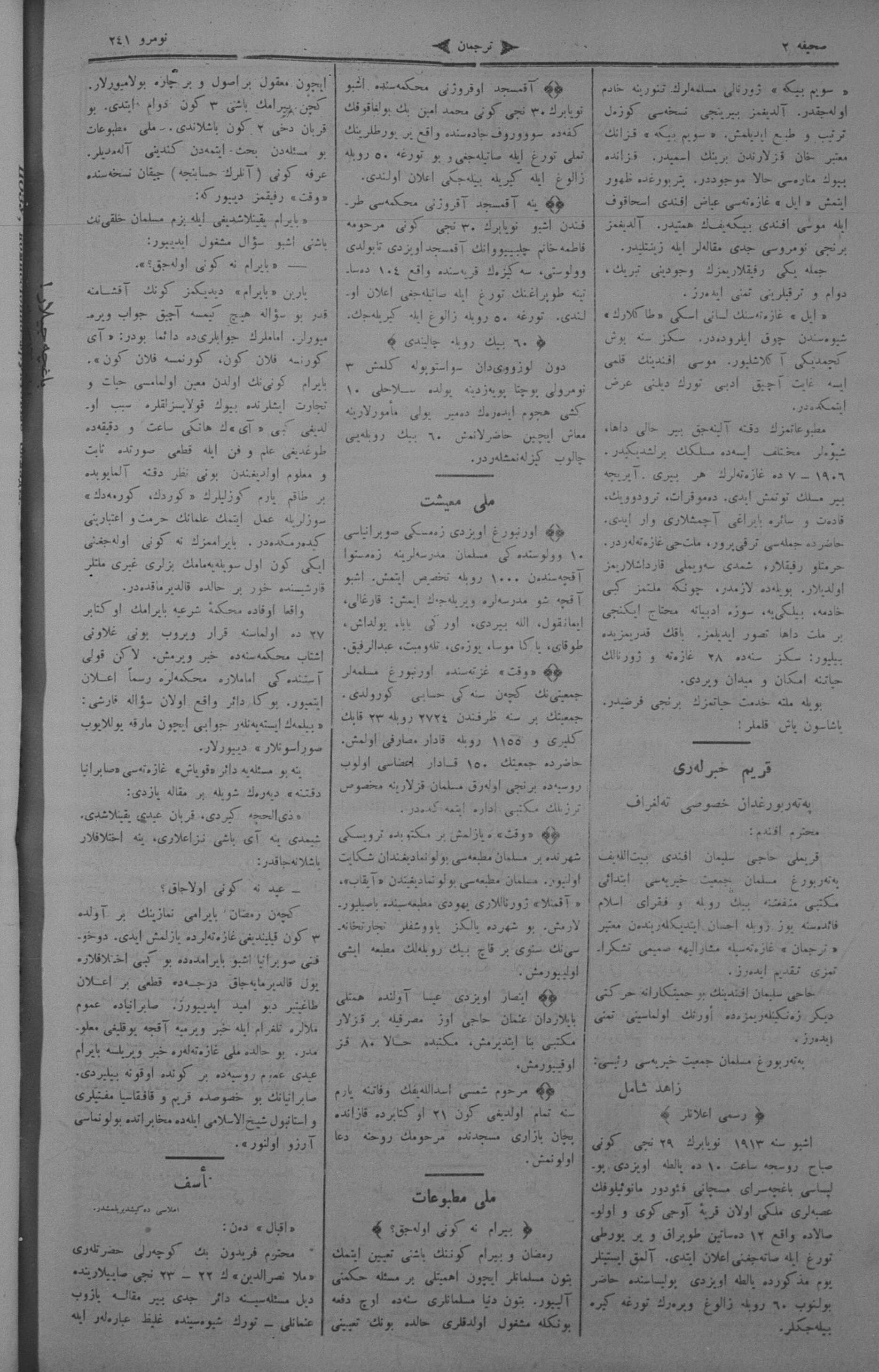The name of the newspaper changed to Tercüman-ı Ahval-i Zaman in 1905. In 1909, it started to be published under its first name, Tercüman.