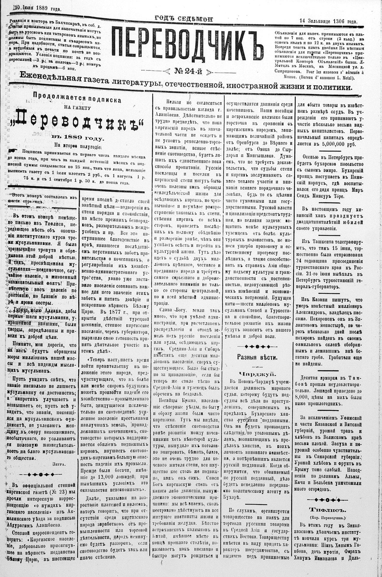 Tercüman, 30 June 1889 Year 7 No 24