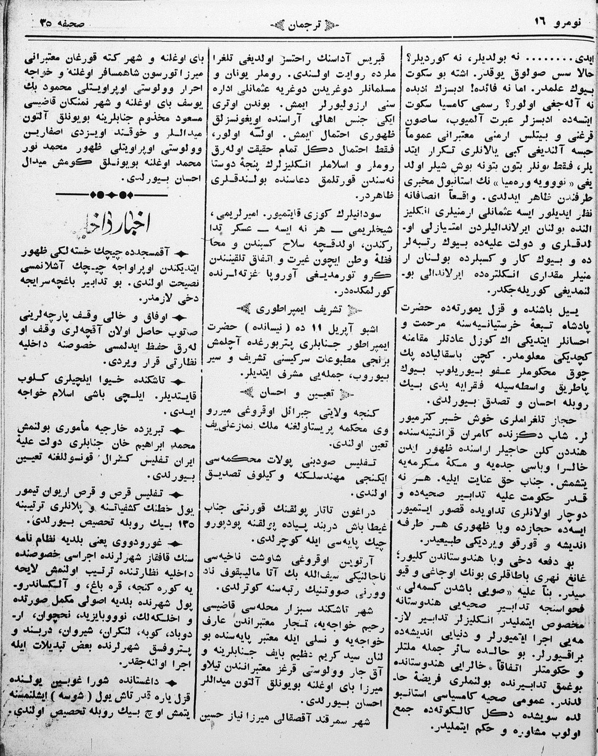 The name of the newspaper changed to Tercüman-ı Ahval-i Zaman in 1905. In 1909, it started to be published under its first name, Tercüman.