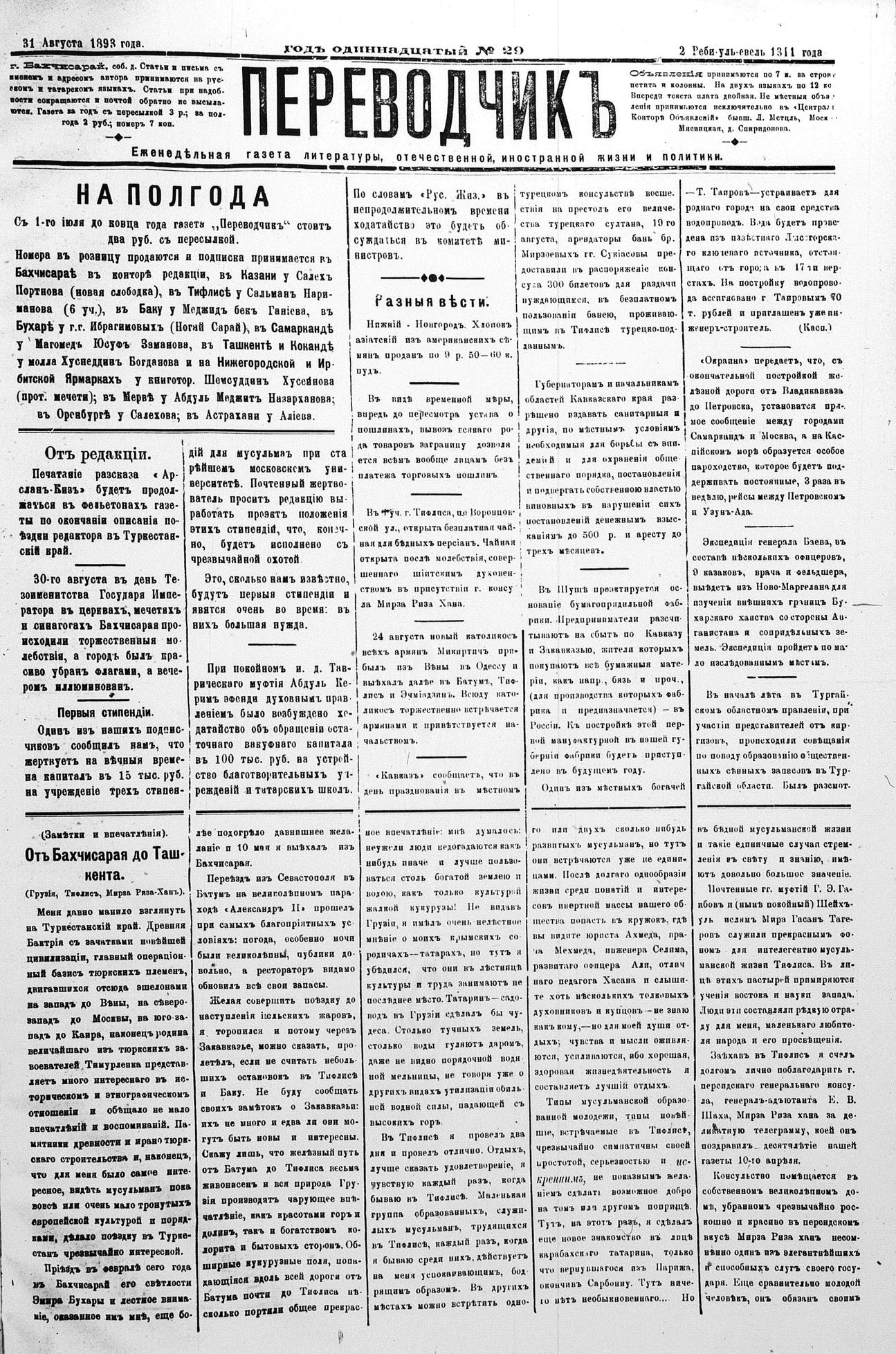Turkish-Russian newspaper published in Crimea by İsmail Gaspıralı.