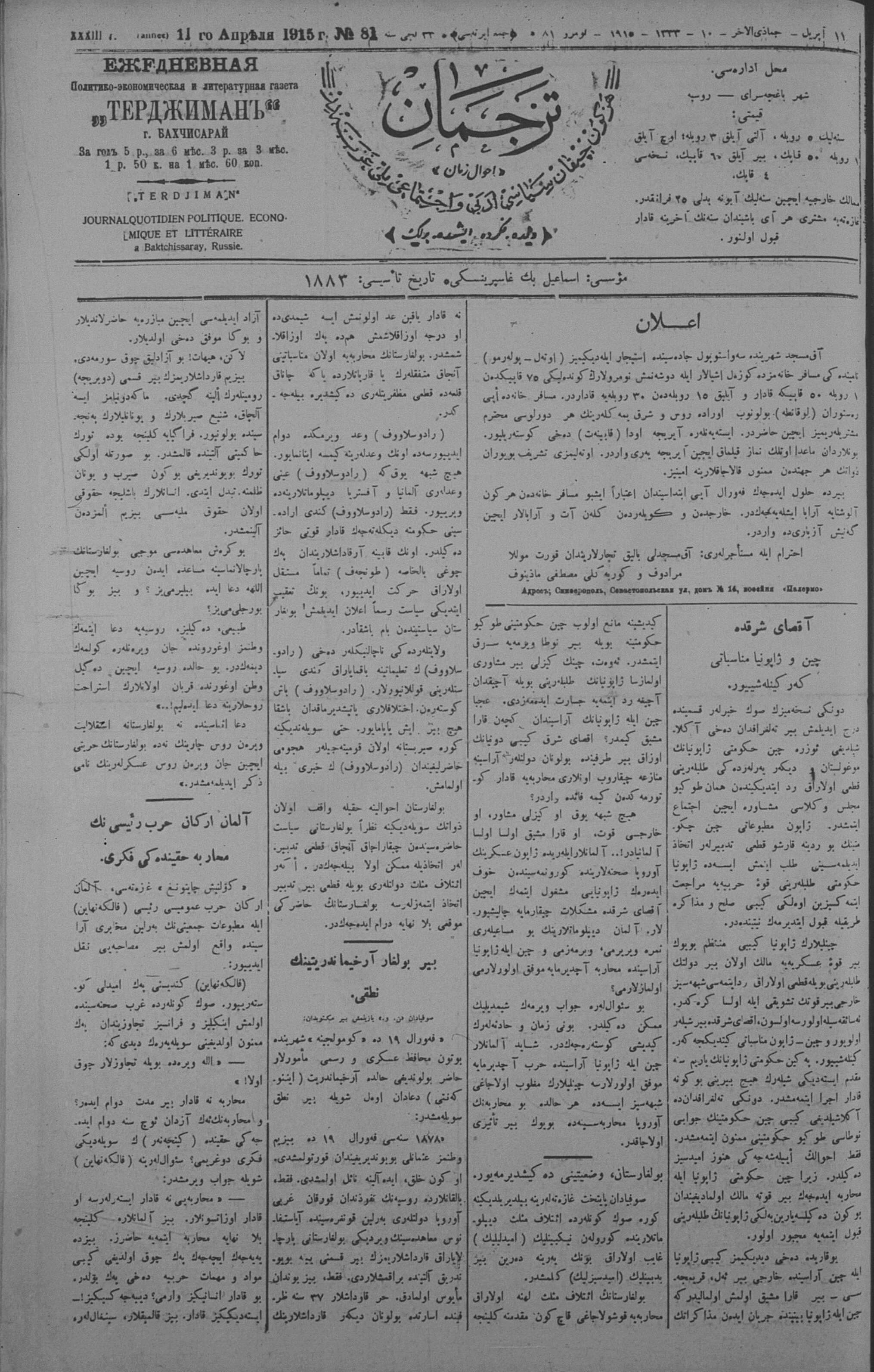 Turkish-Russian newspaper published in Crimea by İsmail Gaspıralı.