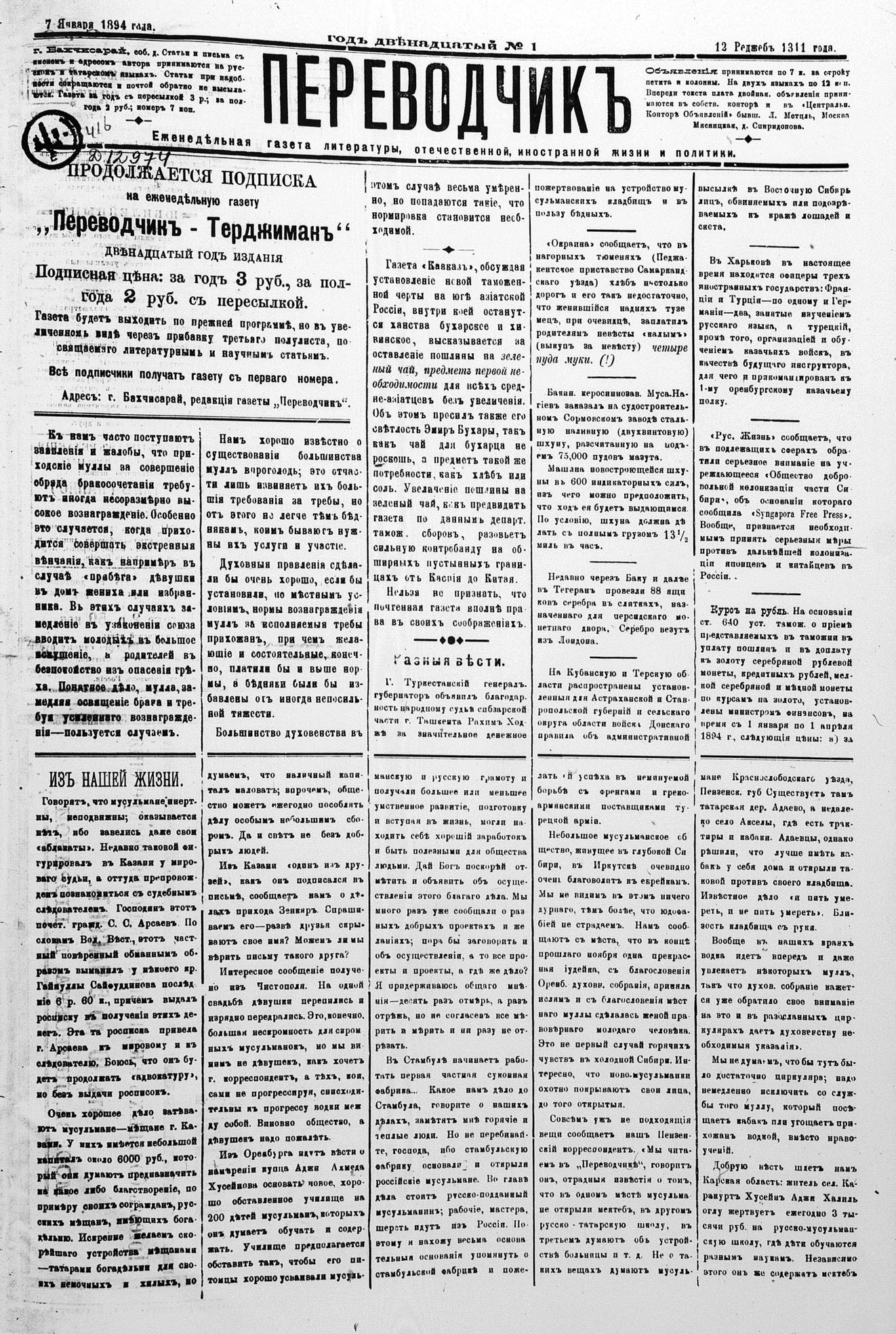 Turkish-Russian newspaper published in Crimea by İsmail Gaspıralı.