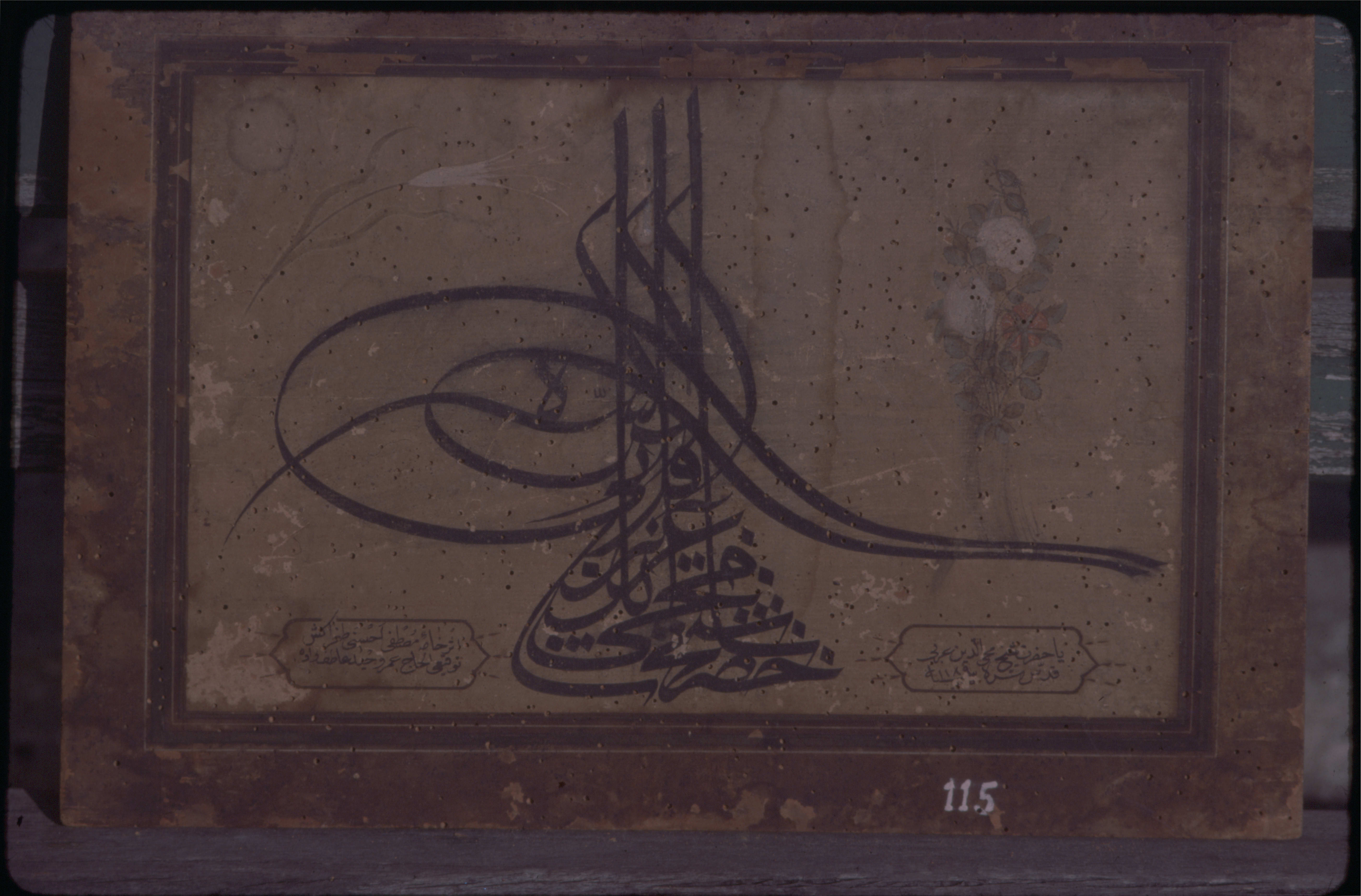 Hattat Tevkii Hacı Atıfzade Ömer Vahid Efendi'ye ait Ya Hazret-i Muhyiddin Arabi yazısının tuğra formunda yazılmış şekli (1189/1775)