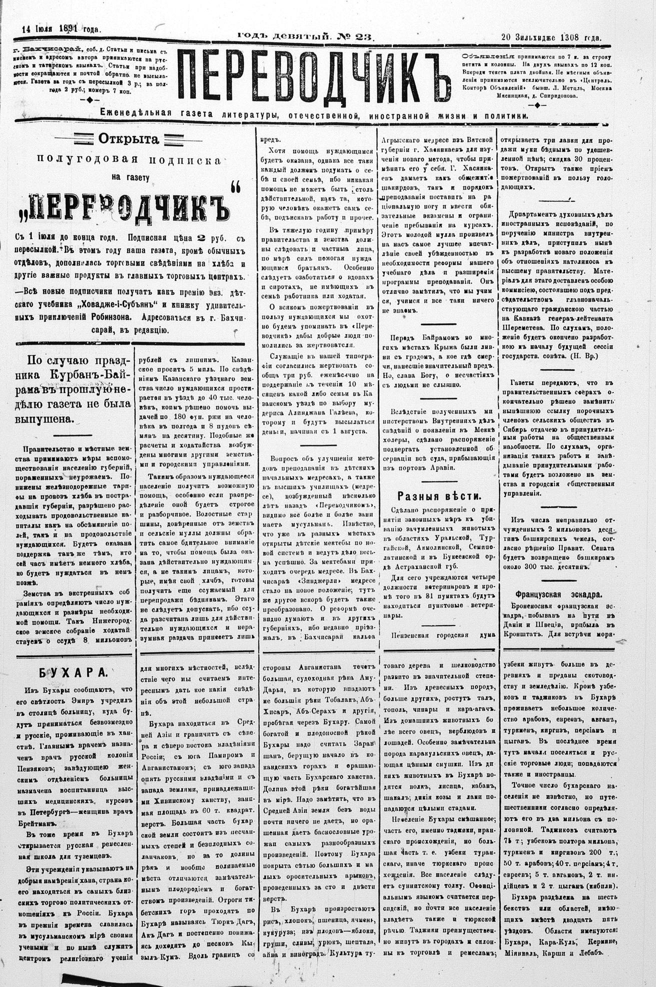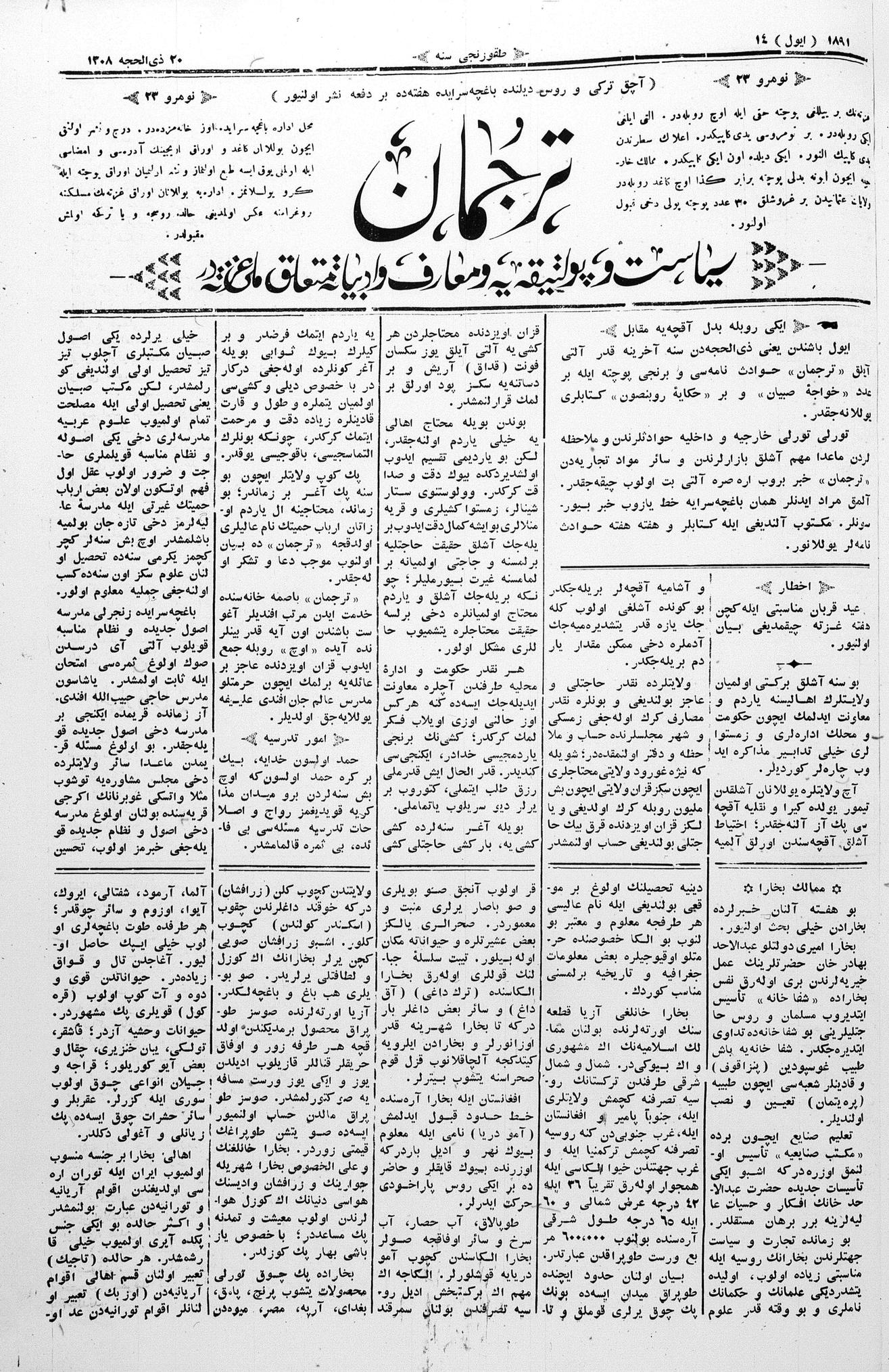 Tercüman, 14 July 1891 Year 9 No 23