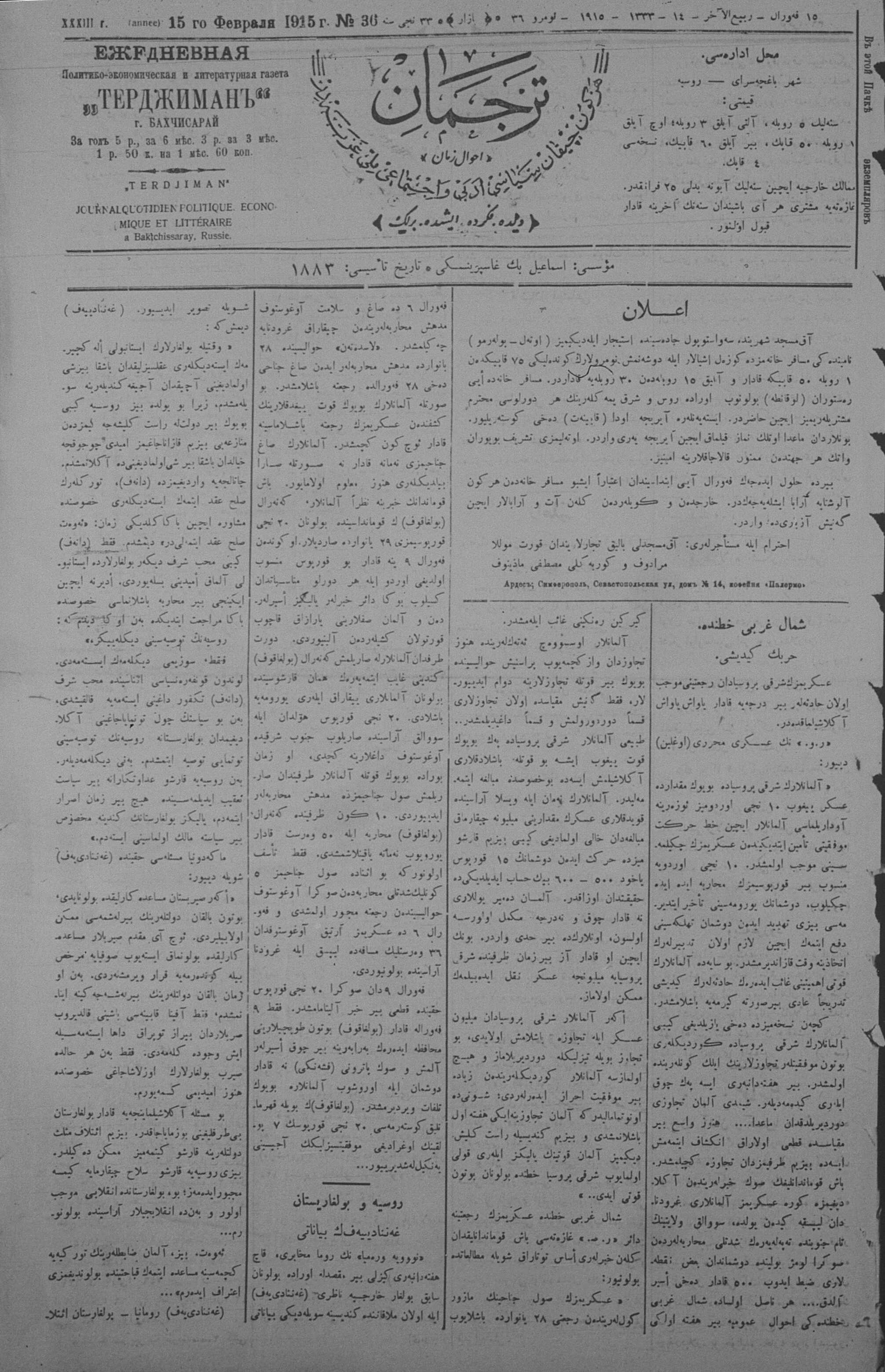 Tercüman, 15 February 1915 Year 33 No 36
