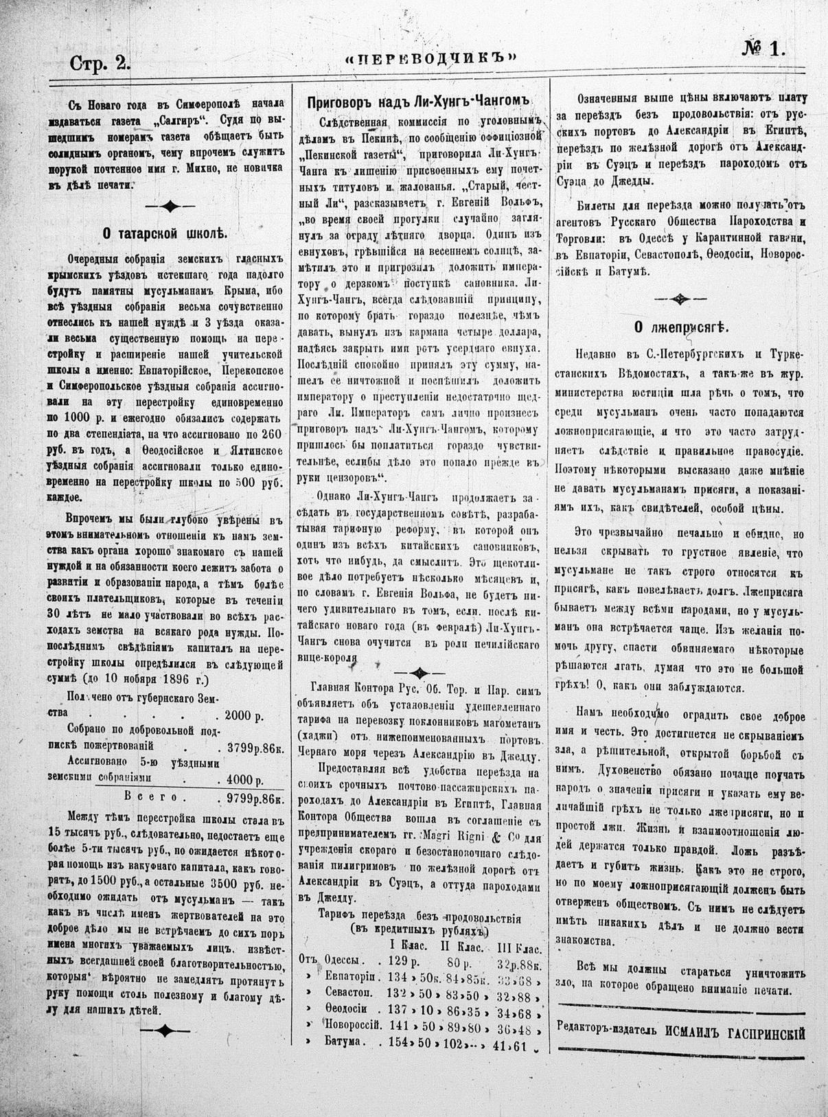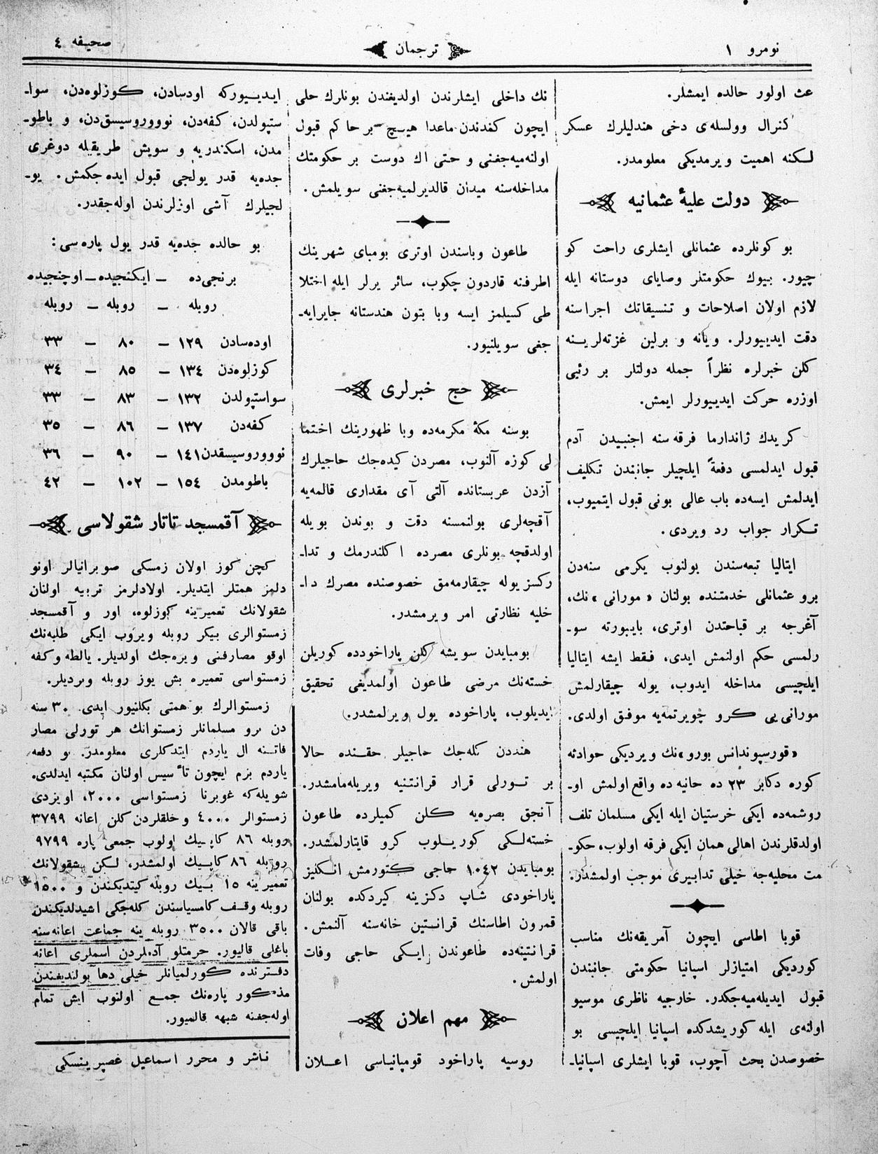 Turkish-Russian newspaper published in Crimea by İsmail Gaspıralı.