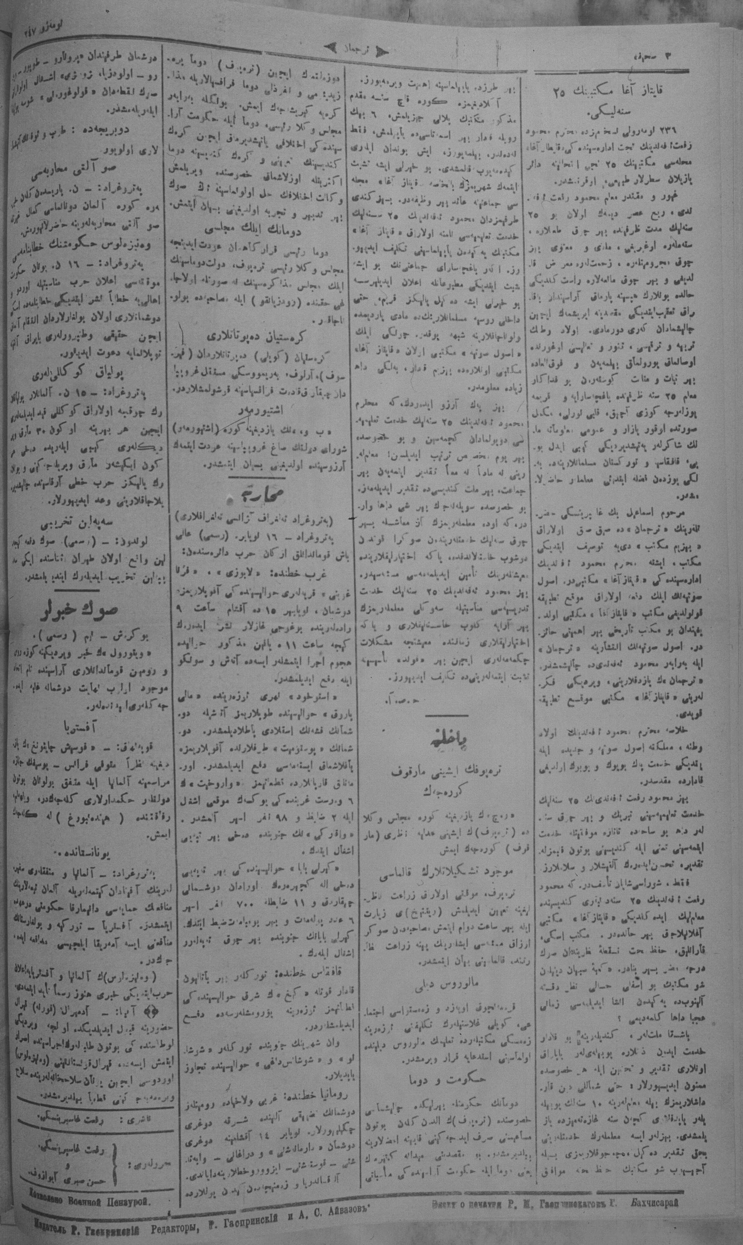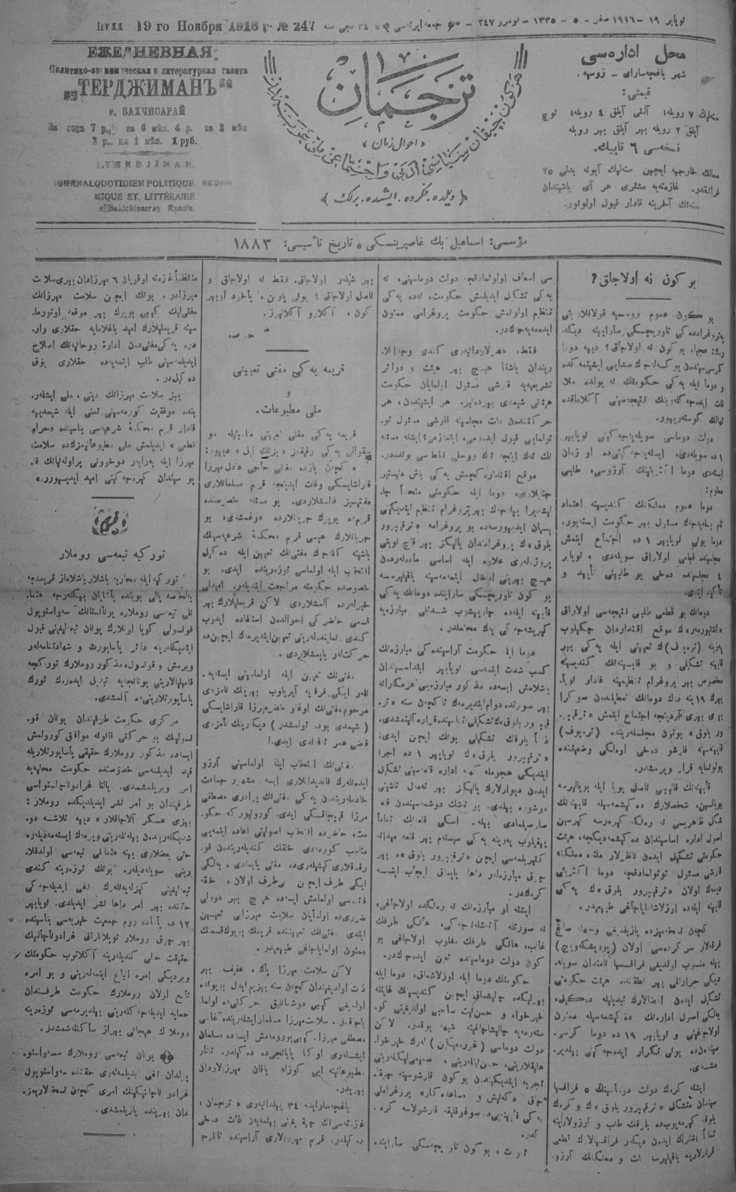 Turkish-Russian newspaper published in Crimea by İsmail Gaspıralı.