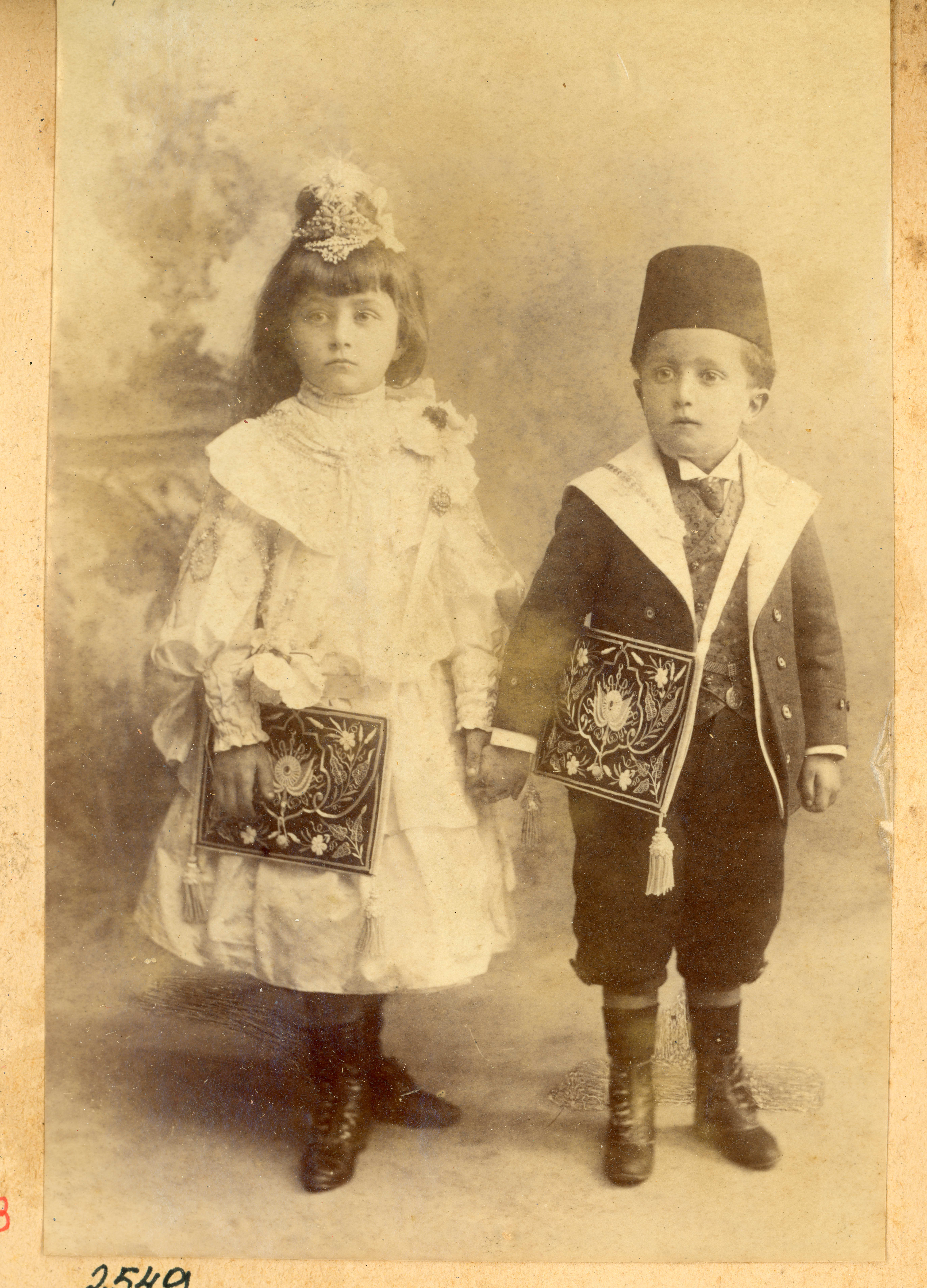 Osmanlı dönemi mektepli iki çocuğun çekilen hatıra fotoğrafı