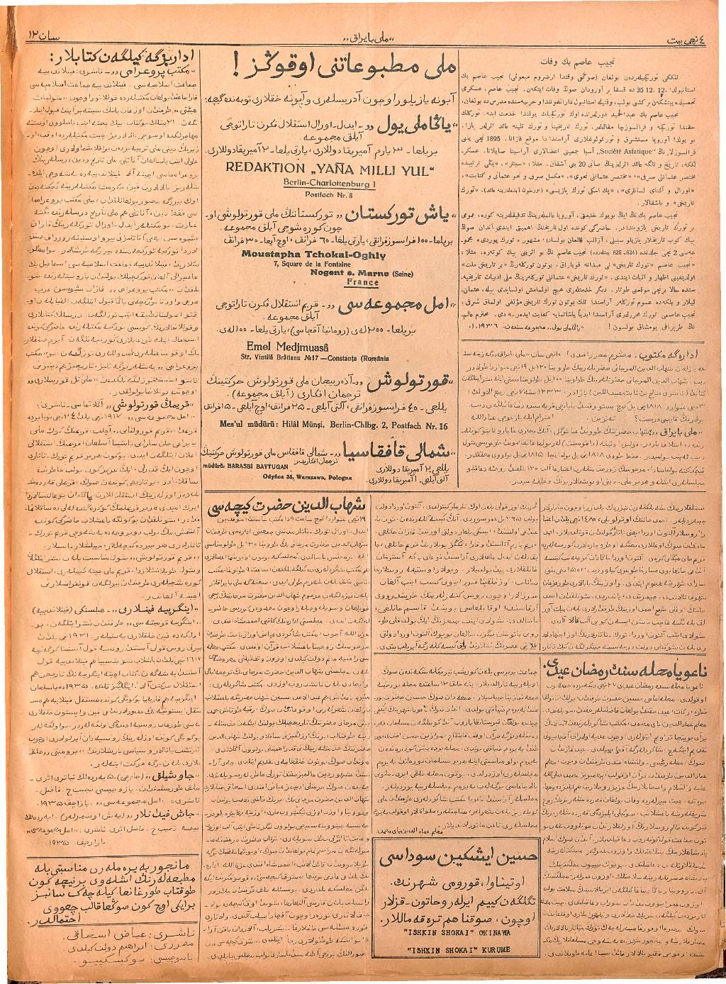 The Milli Bayrak newspaper was written in Tatar with Arabic script.
