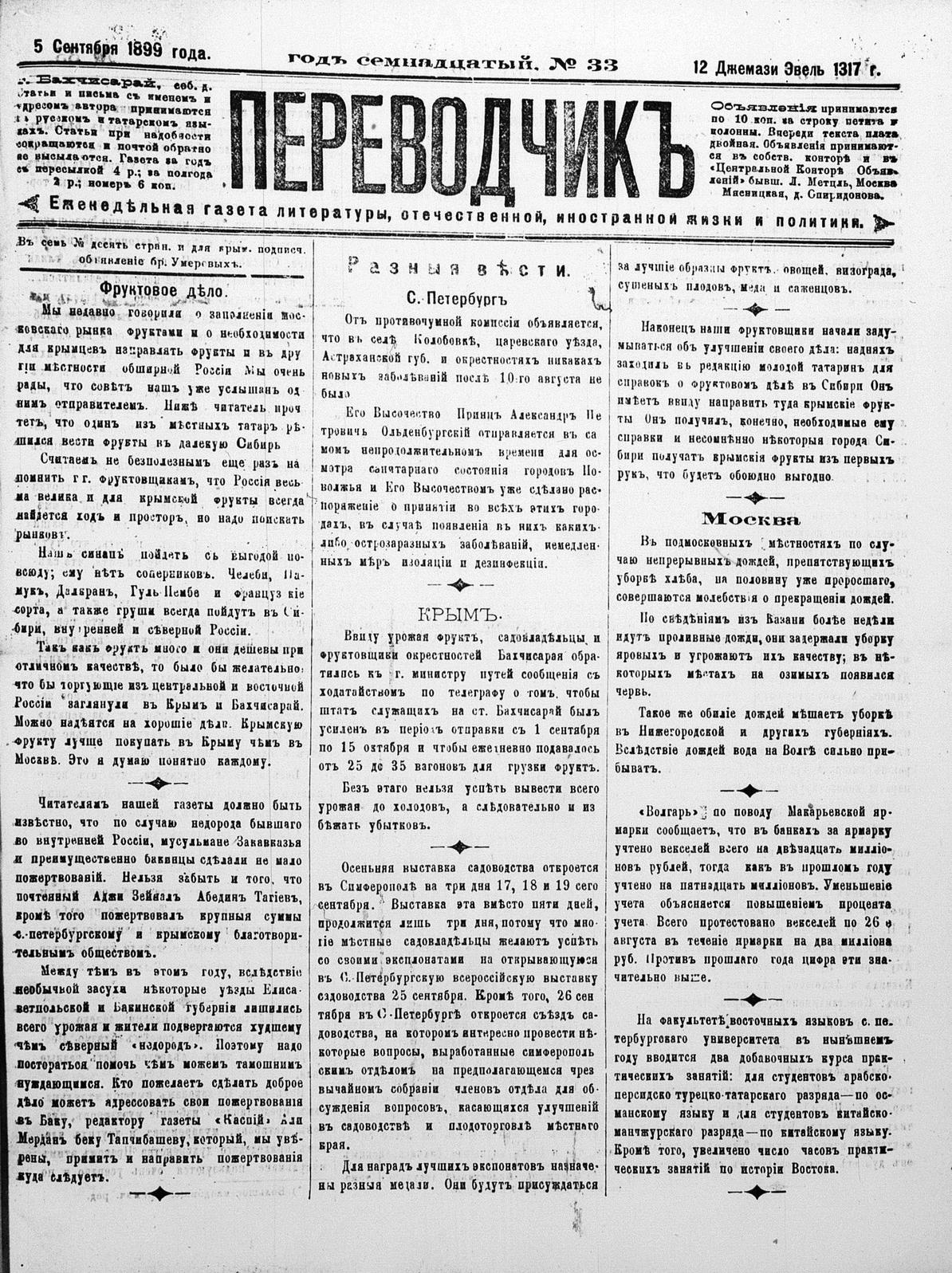Turkish-Russian newspaper published in Crimea by İsmail Gaspıralı.