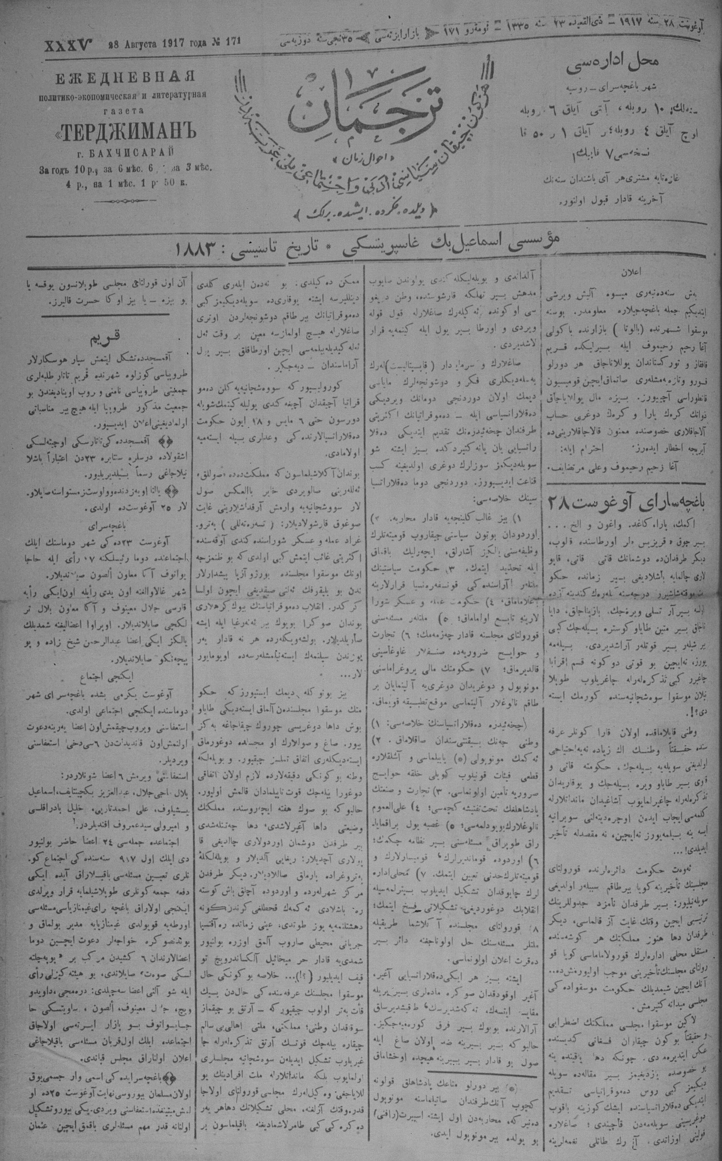 Tercüman, 28 August 1917 Year 35 No 171