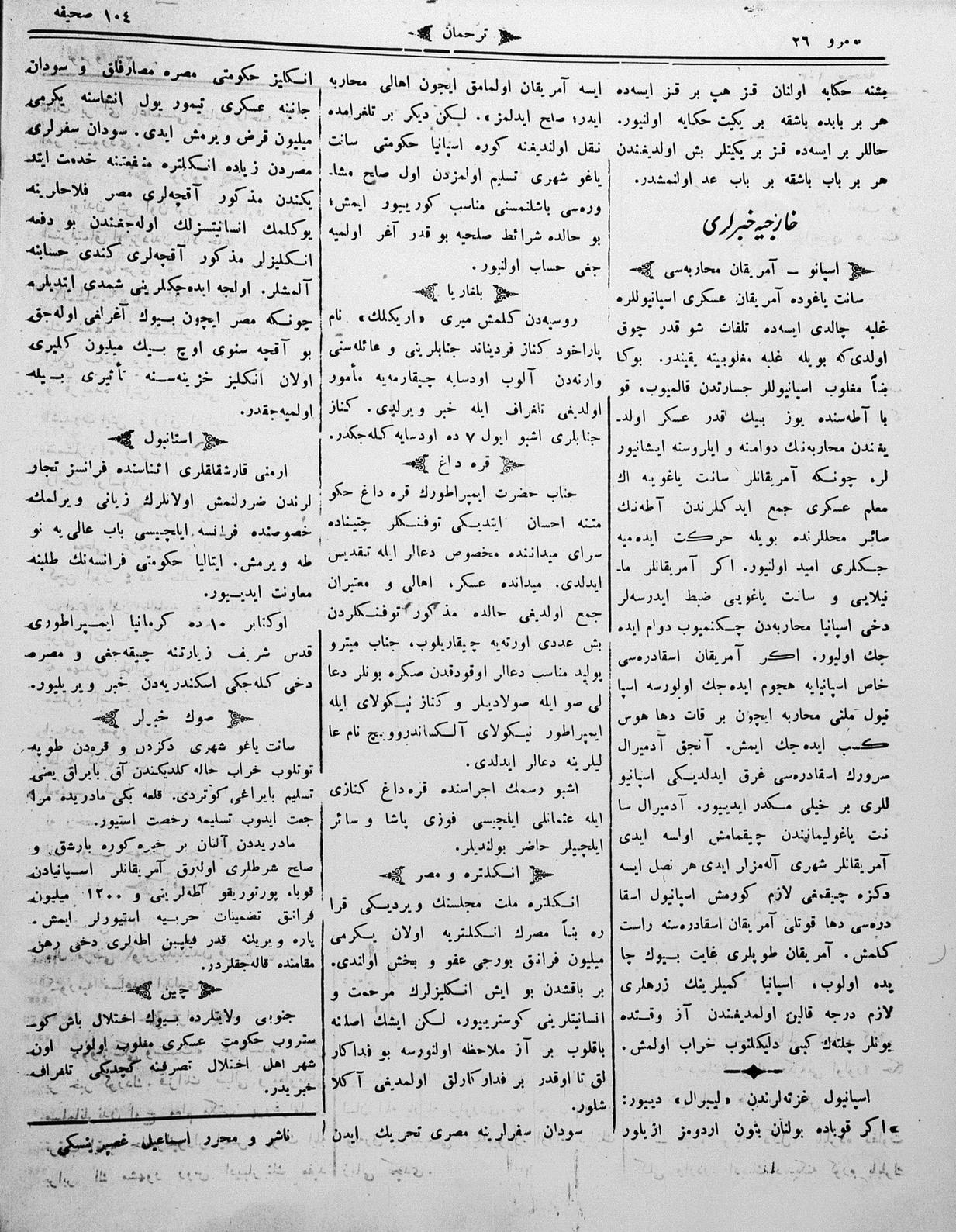 The name of the newspaper changed to Tercüman-ı Ahval-i Zaman in 1905. In 1909, it started to be published under its first name, Tercüman.