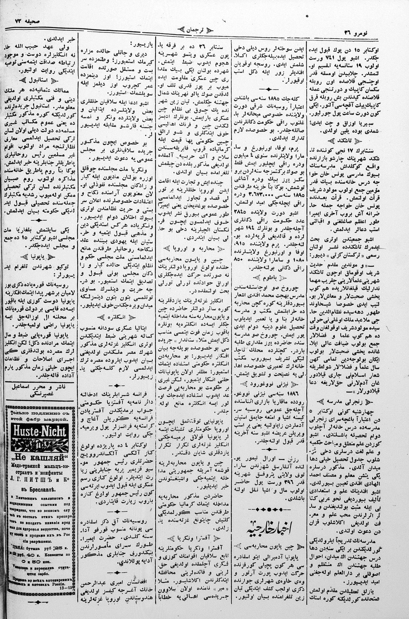 The name of the newspaper changed to Tercüman-ı Ahval-i Zaman in 1905. In 1909, it started to be published under its first name, Tercüman.