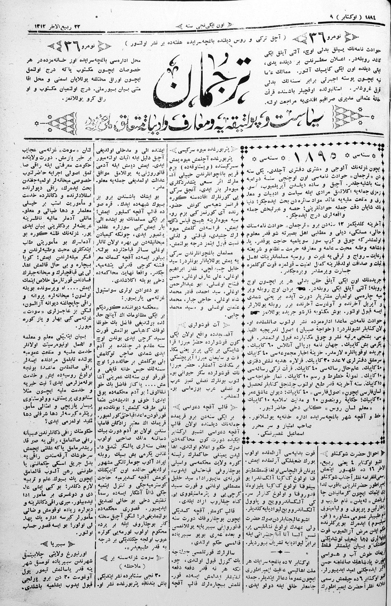 Turkish-Russian newspaper published in Crimea by İsmail Gaspıralı.