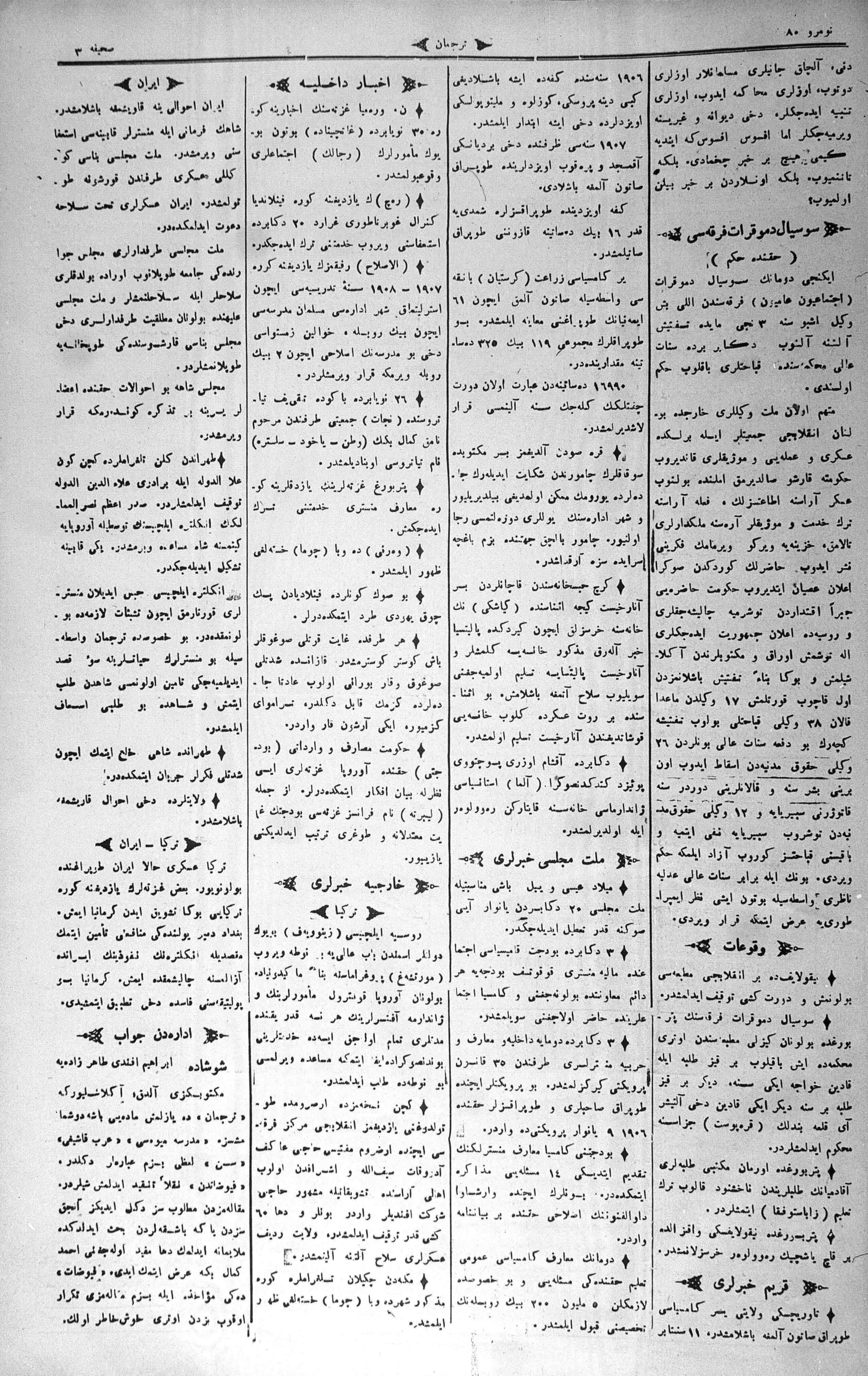 The name of the newspaper changed to Tercüman-ı Ahval-i Zaman in 1905. In 1909, it started to be published under its first name, Tercüman.