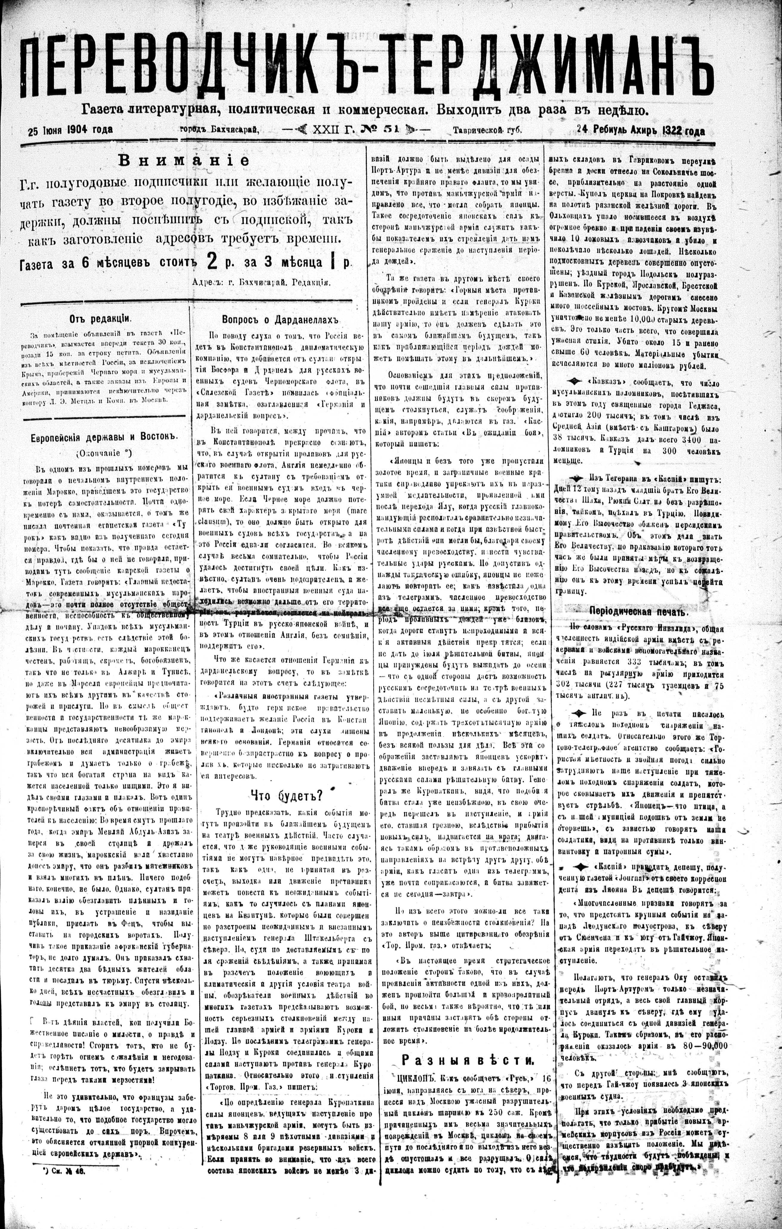 Tercüman, 25 June 1904 Year 22 No 51