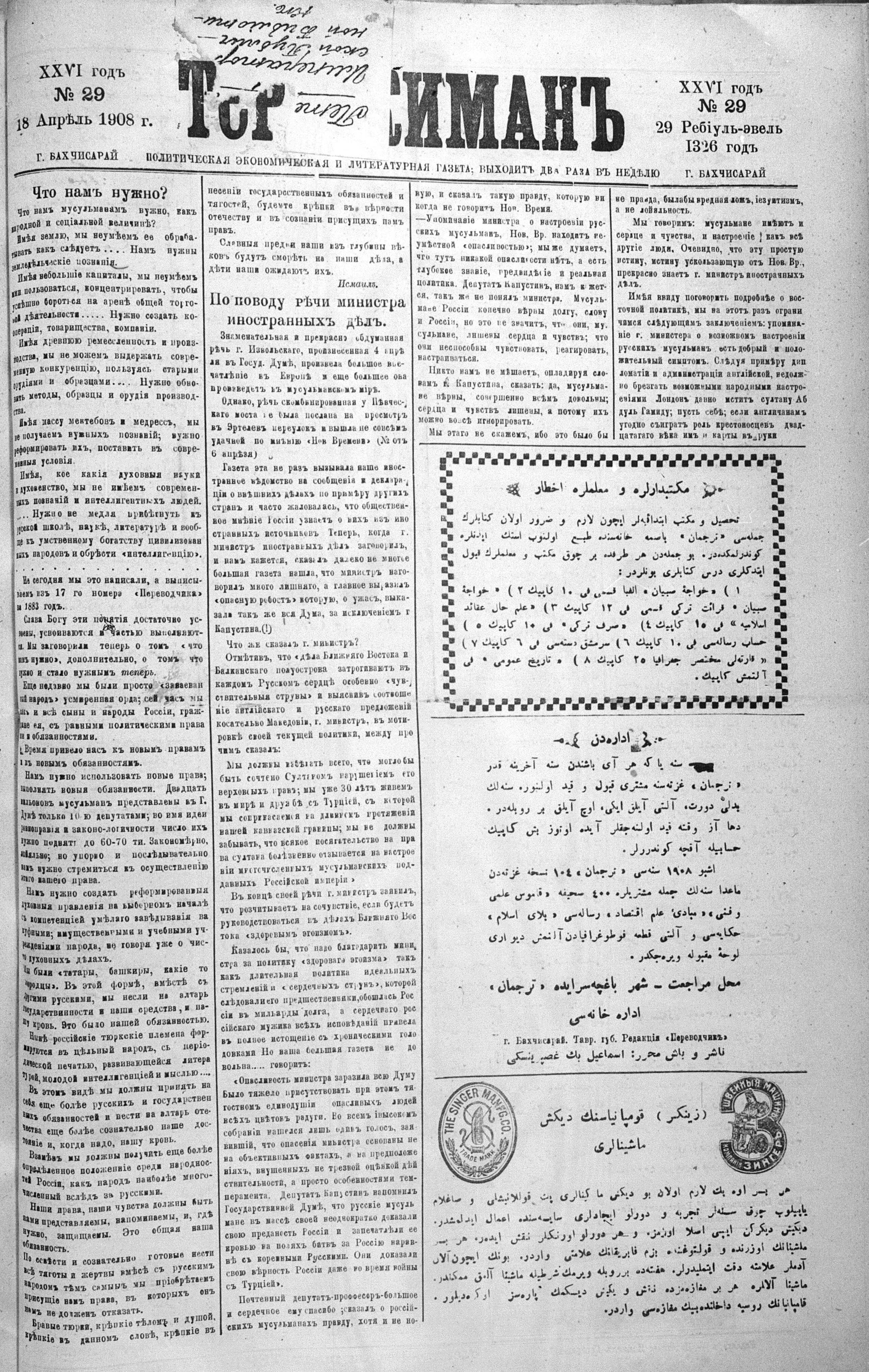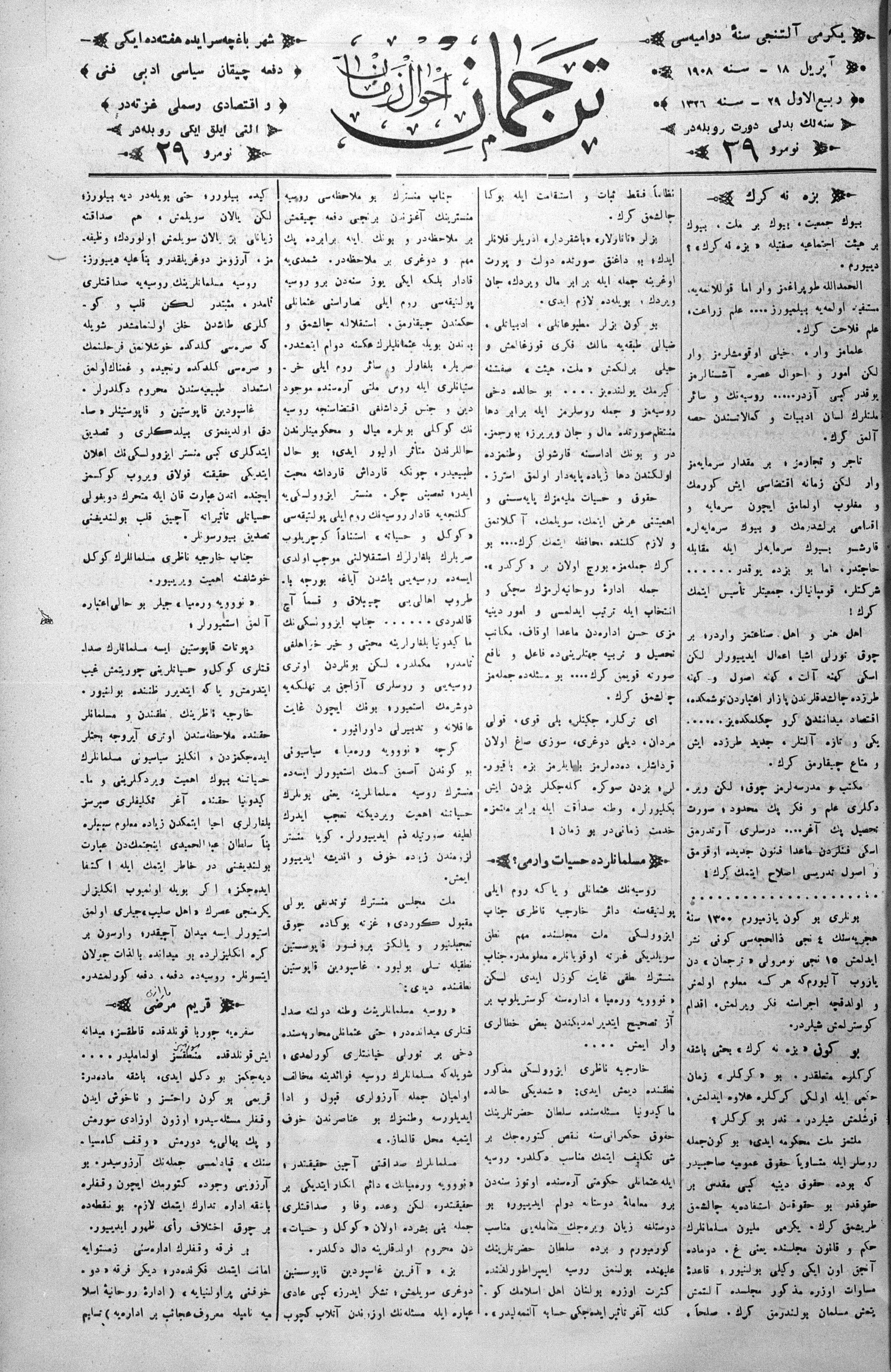 Tercüman, 18 April 1908 Year 26 No 29