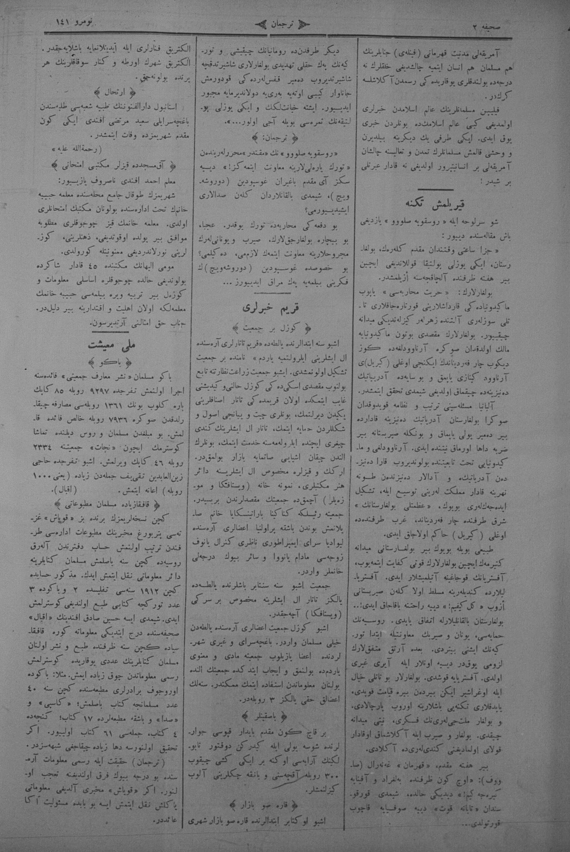 Turkish-Russian newspaper published in Crimea by İsmail Gaspıralı.