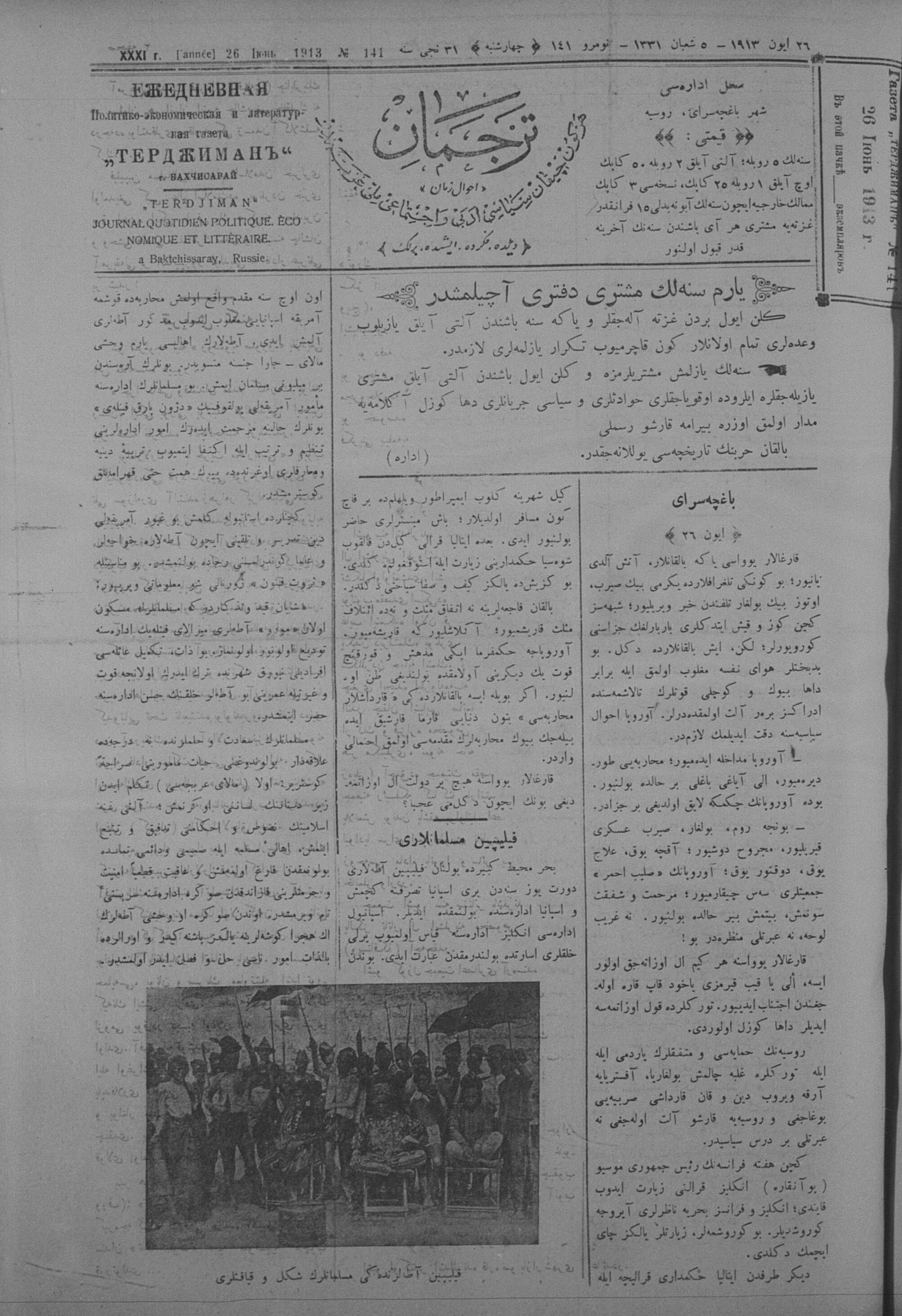 Tercüman, 26 June 1913 Year 31 No 141