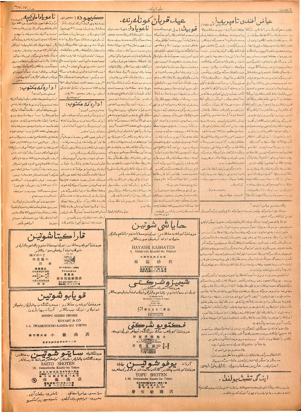 The Milli Bayrak newspaper was printed in Mukden.