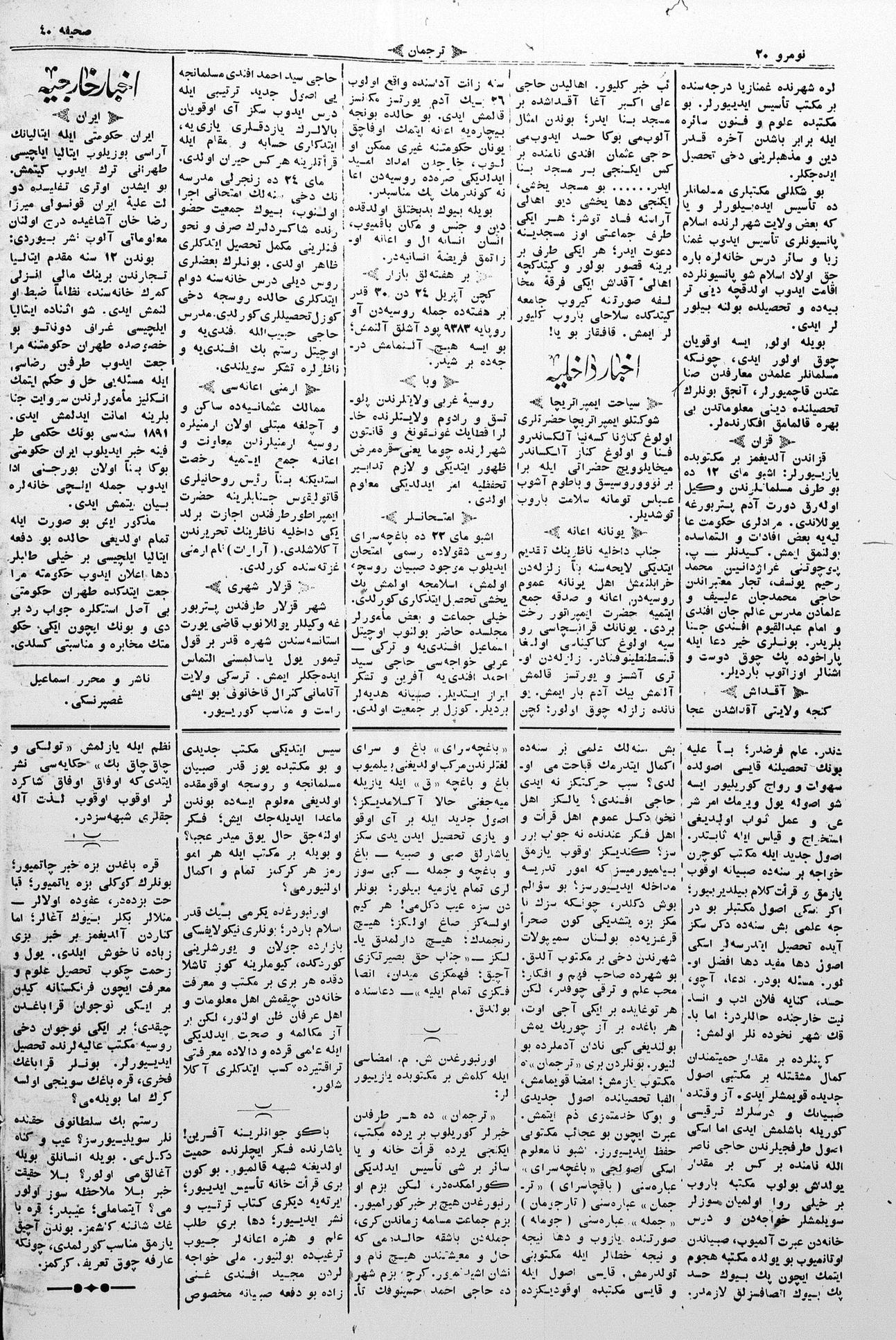 Turkish-Russian newspaper published in Crimea by İsmail Gaspıralı.