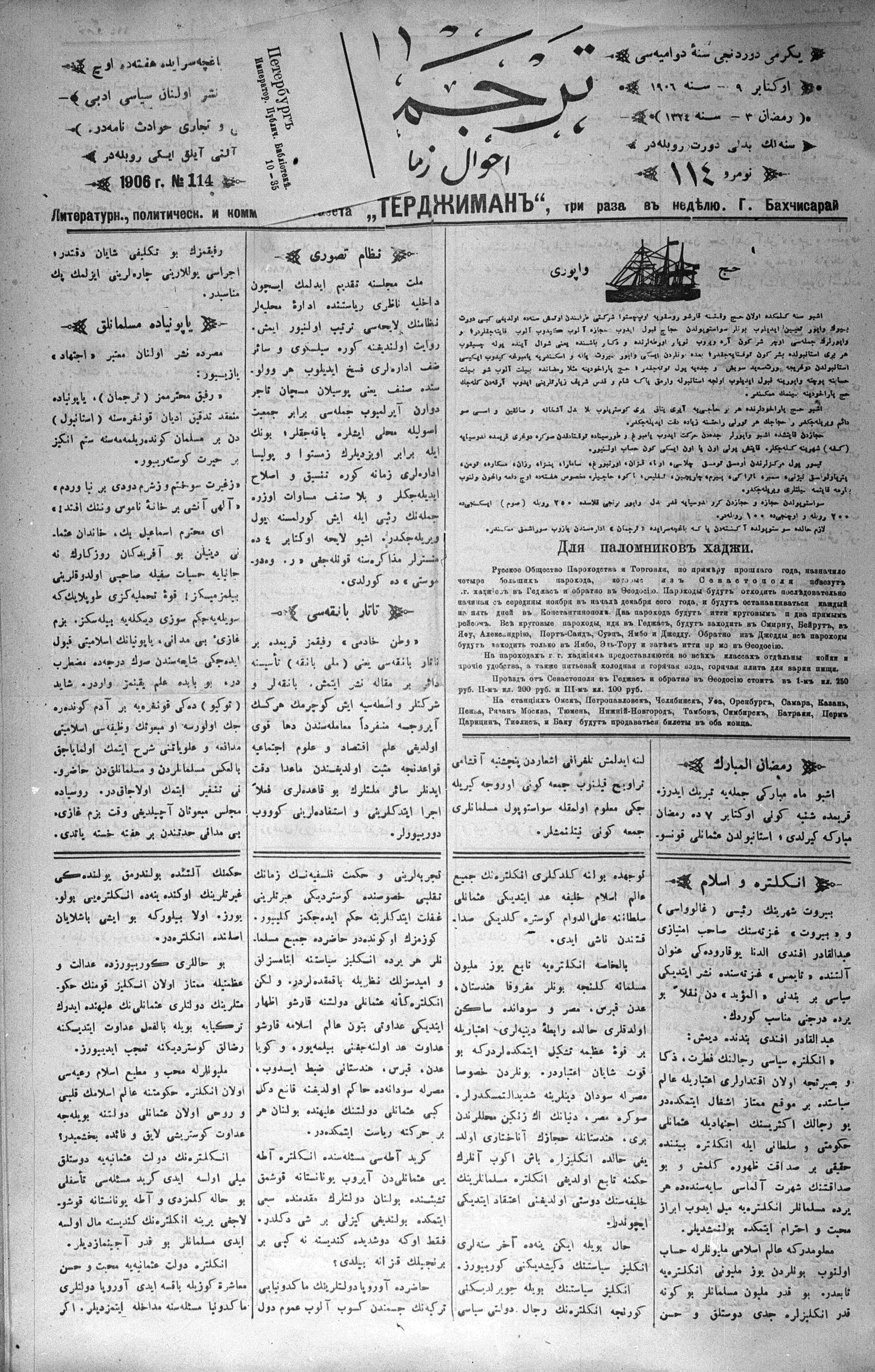 Tercüman, 09 October 1906 Year 24 No 114