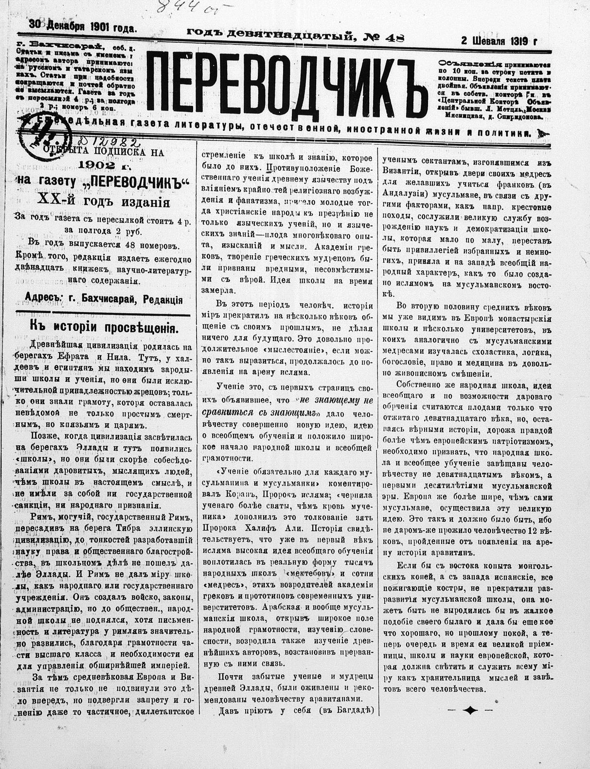 Turkish-Russian newspaper published in Crimea by İsmail Gaspıralı.