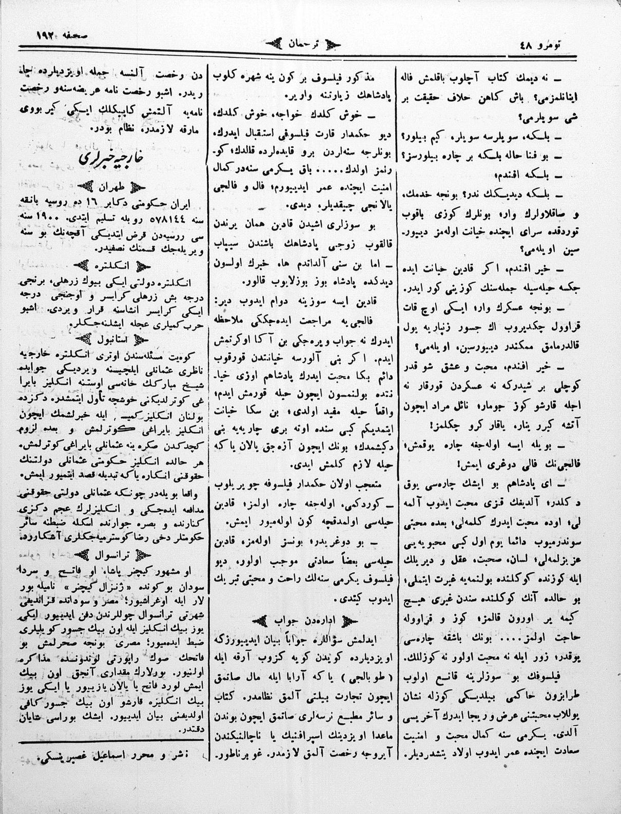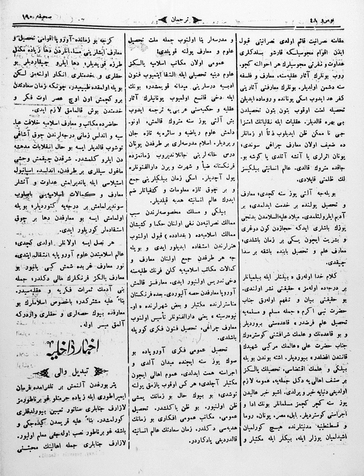 The name of the newspaper changed to Tercüman-ı Ahval-i Zaman in 1905. In 1909, it started to be published under its first name, Tercüman.