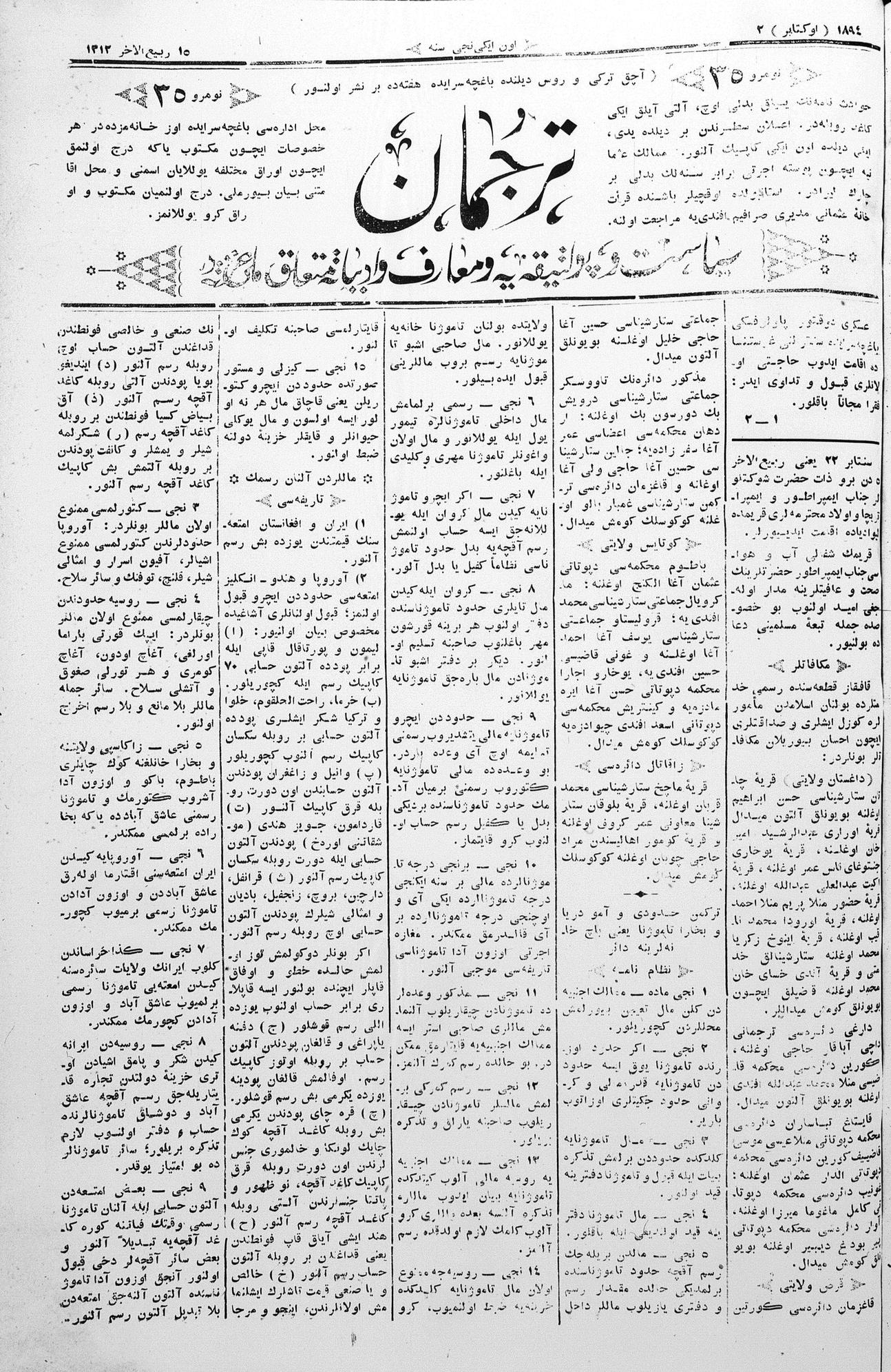 The name of the newspaper changed to Tercüman-ı Ahval-i Zaman in 1905. In 1909, it started to be published under its first name, Tercüman.