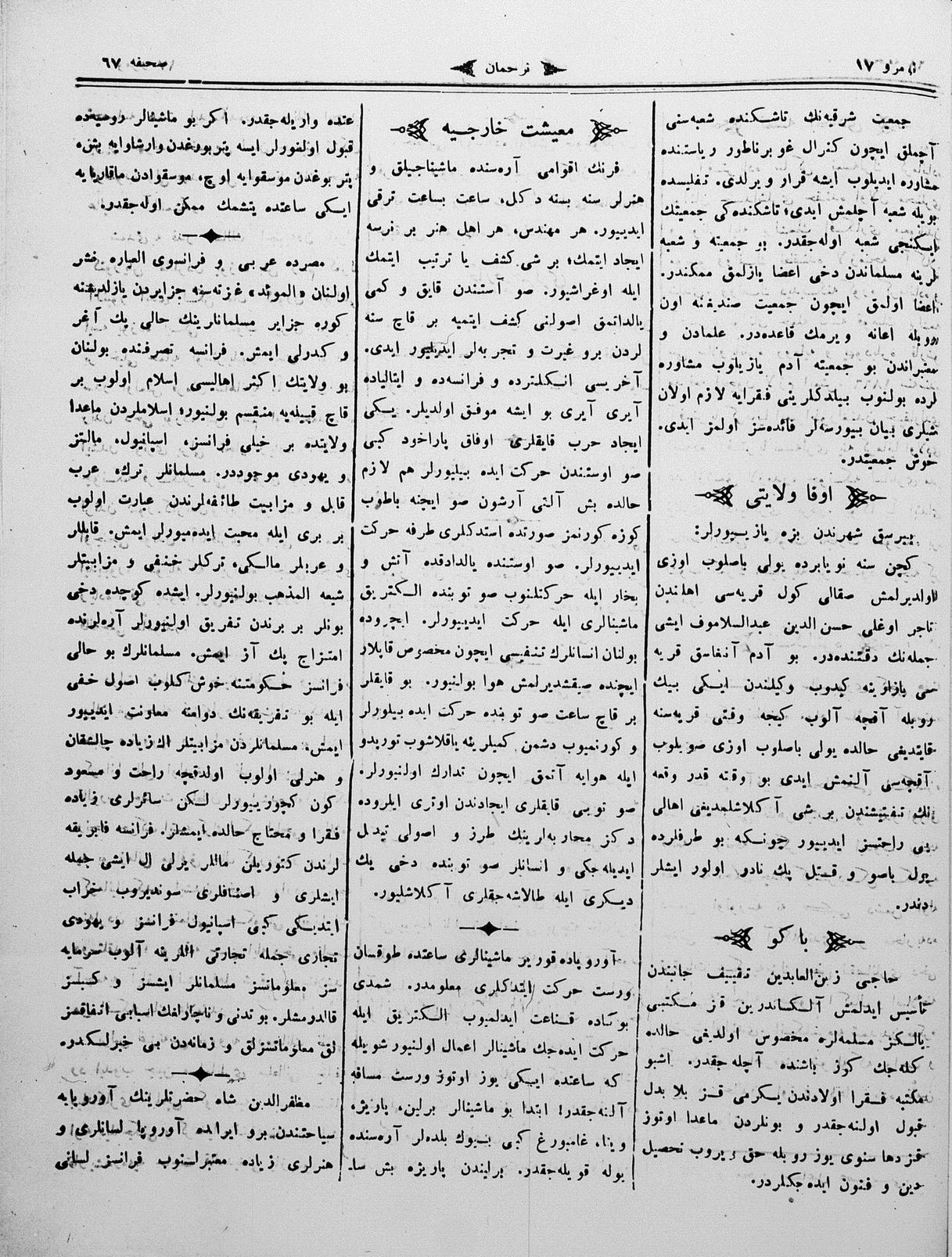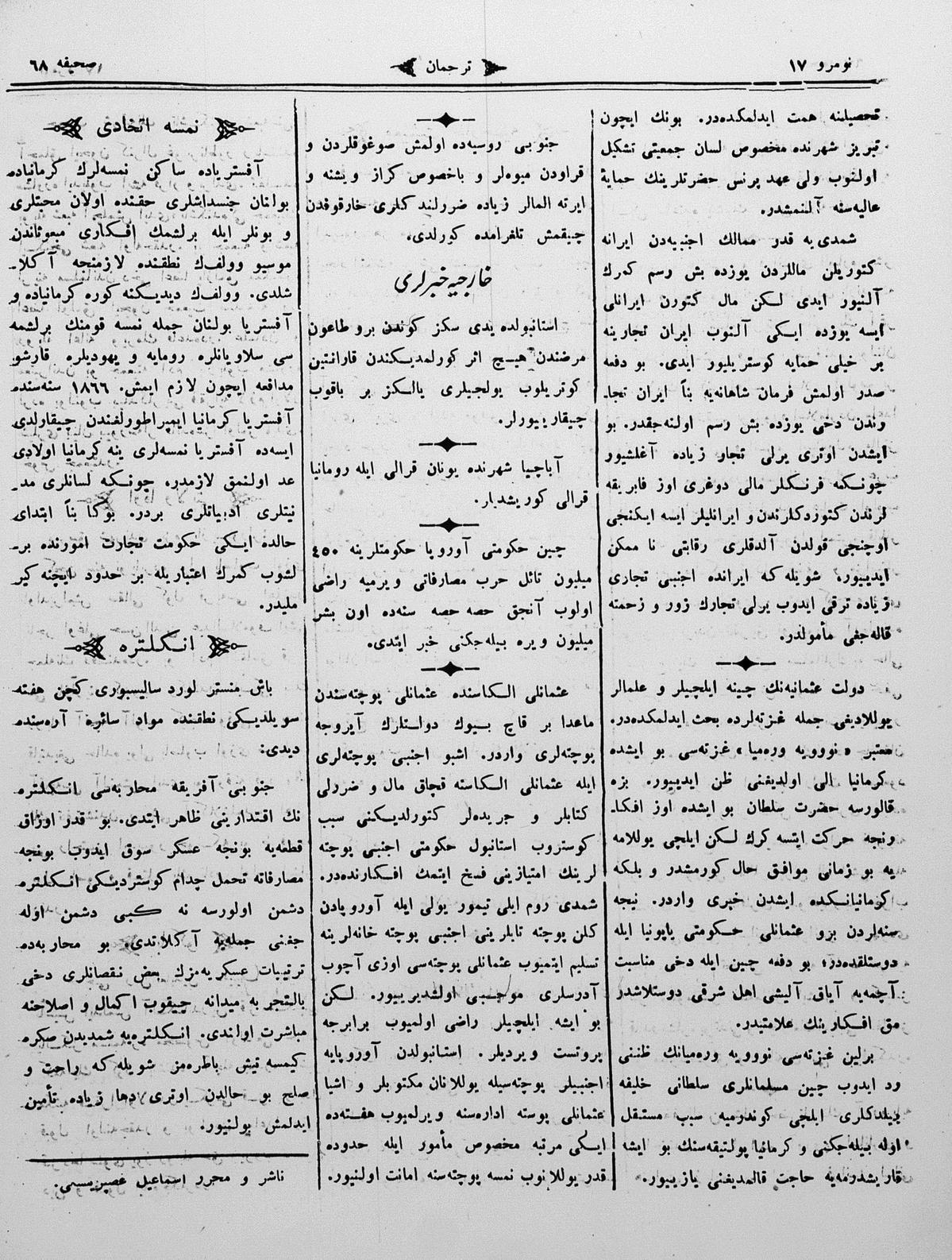 The name of the newspaper changed to Tercüman-ı Ahval-i Zaman in 1905. In 1909, it started to be published under its first name, Tercüman.