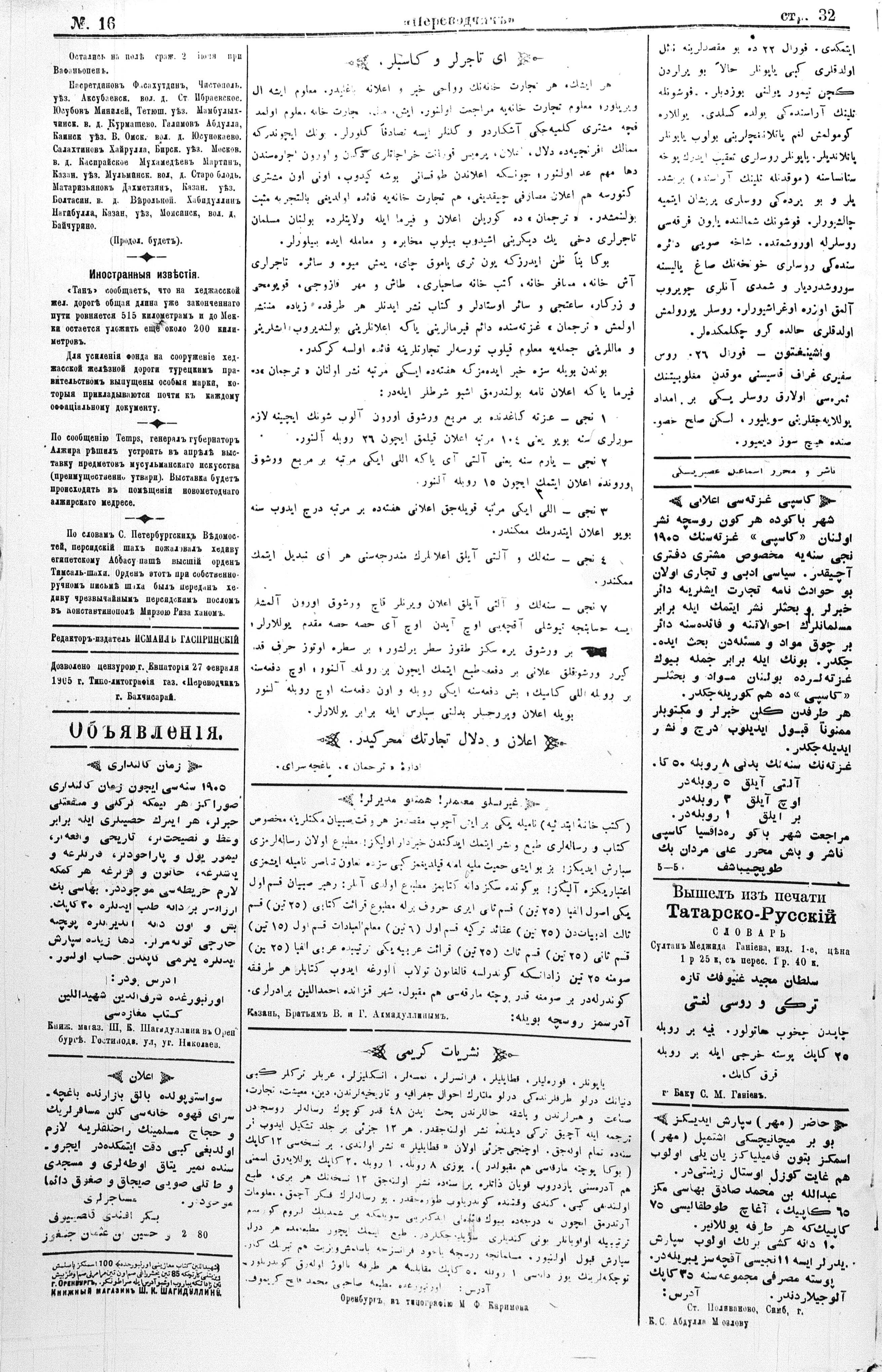 Turkish-Russian newspaper published in Crimea by İsmail Gaspıralı.