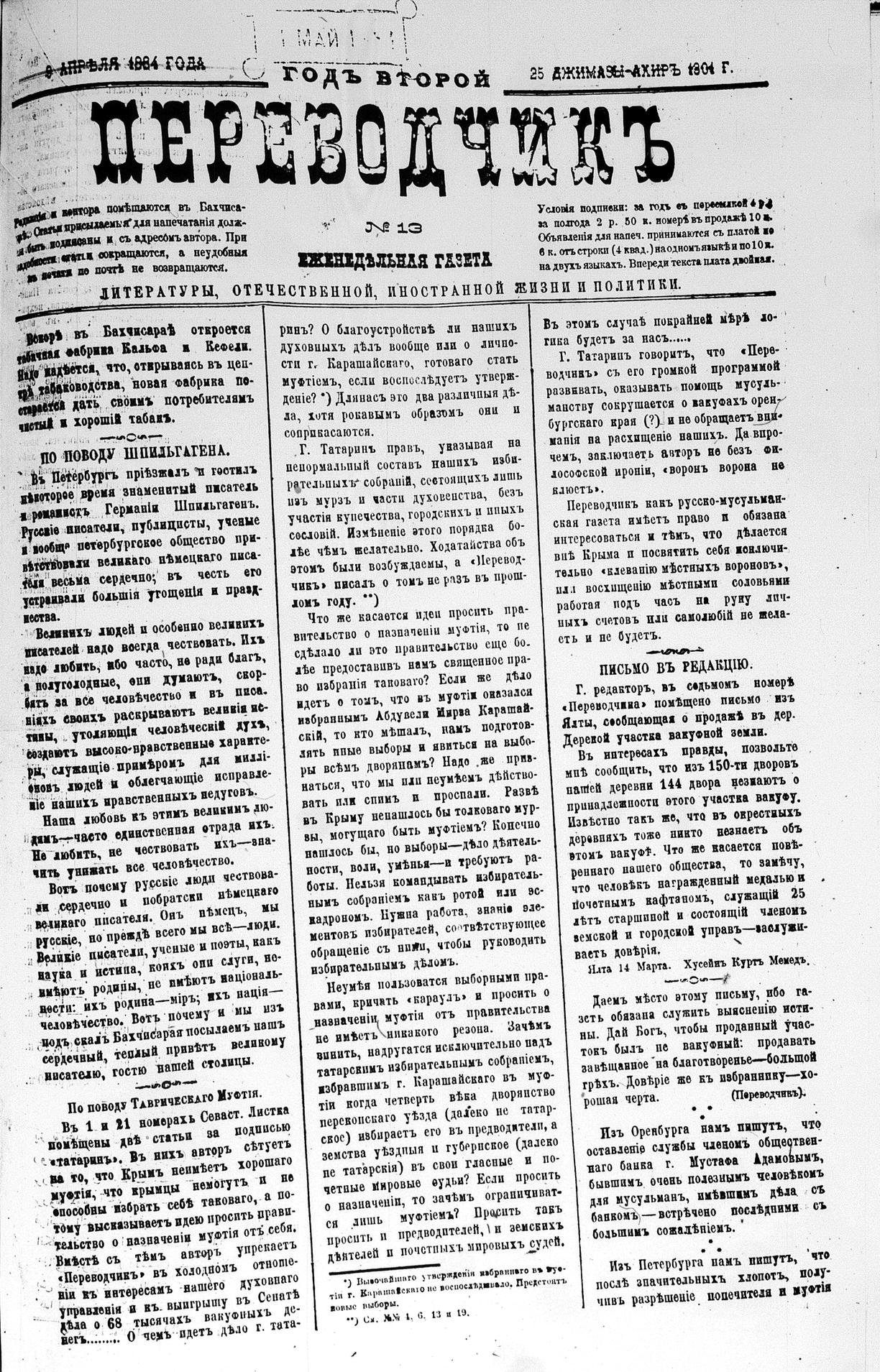 Turkish-Russian newspaper published in Crimea by İsmail Gaspıralı.