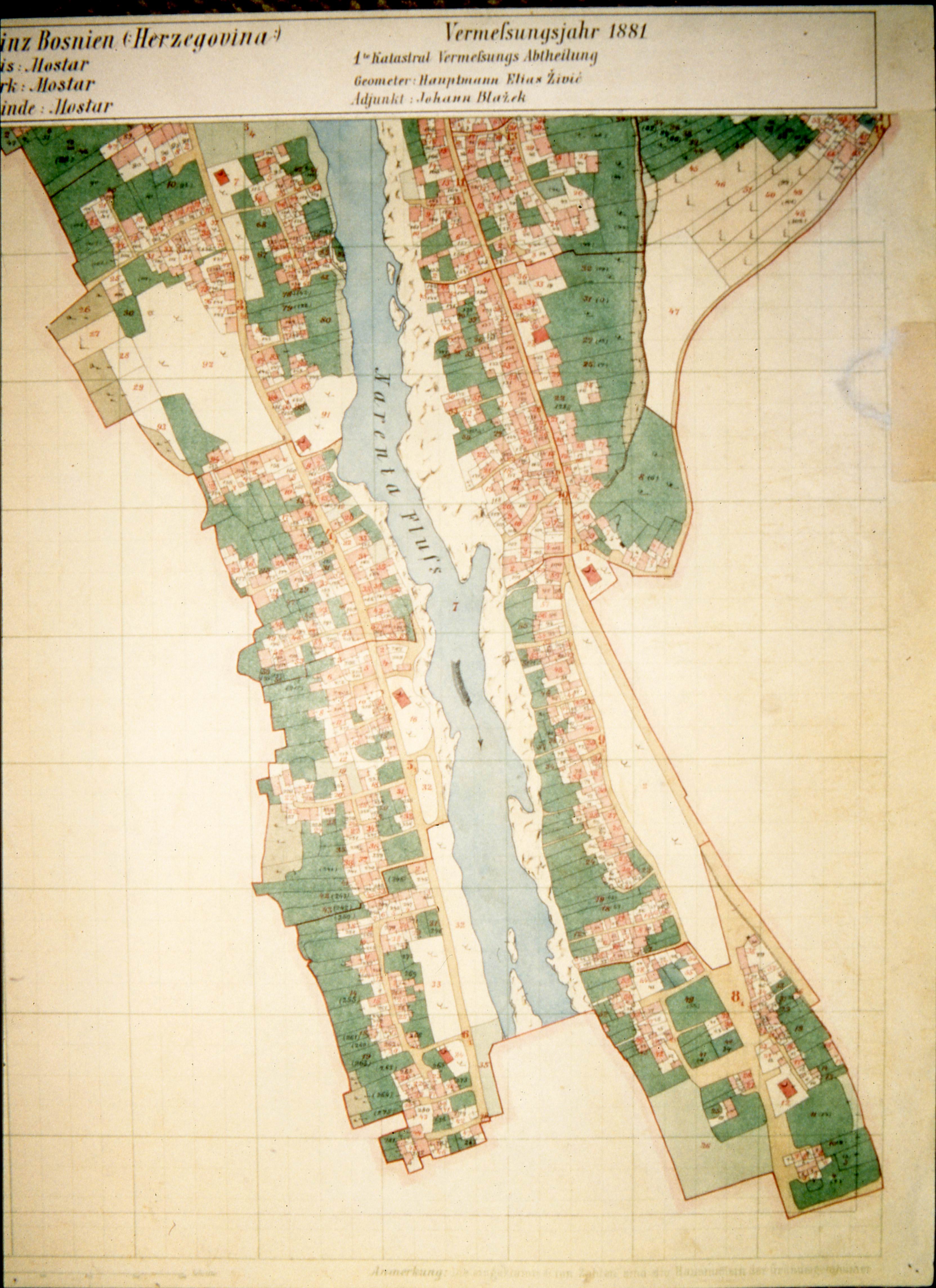 Maps of Mostar drawn by the Austro-Hungarian Military Service in 1881 from the Vienna War Archive