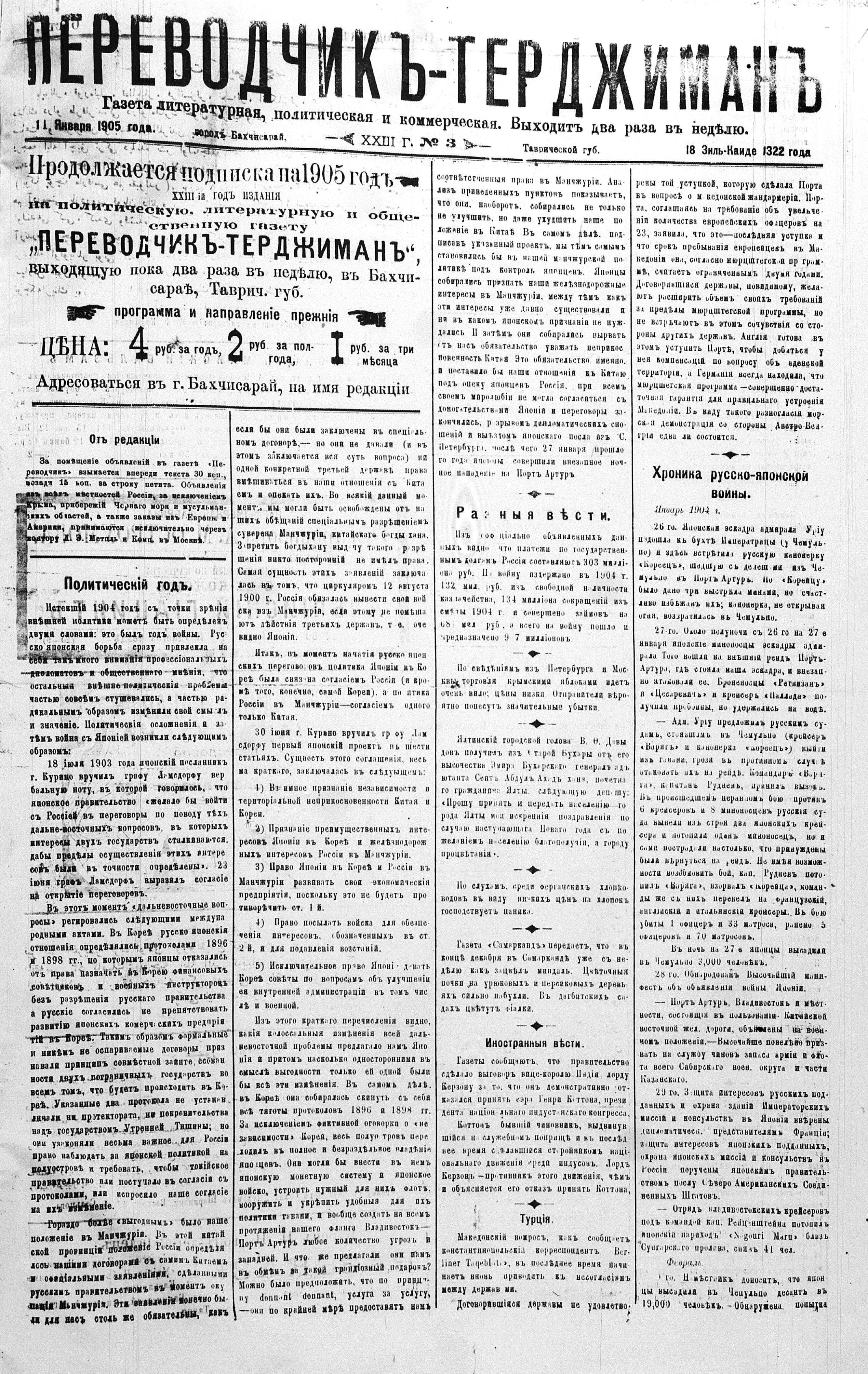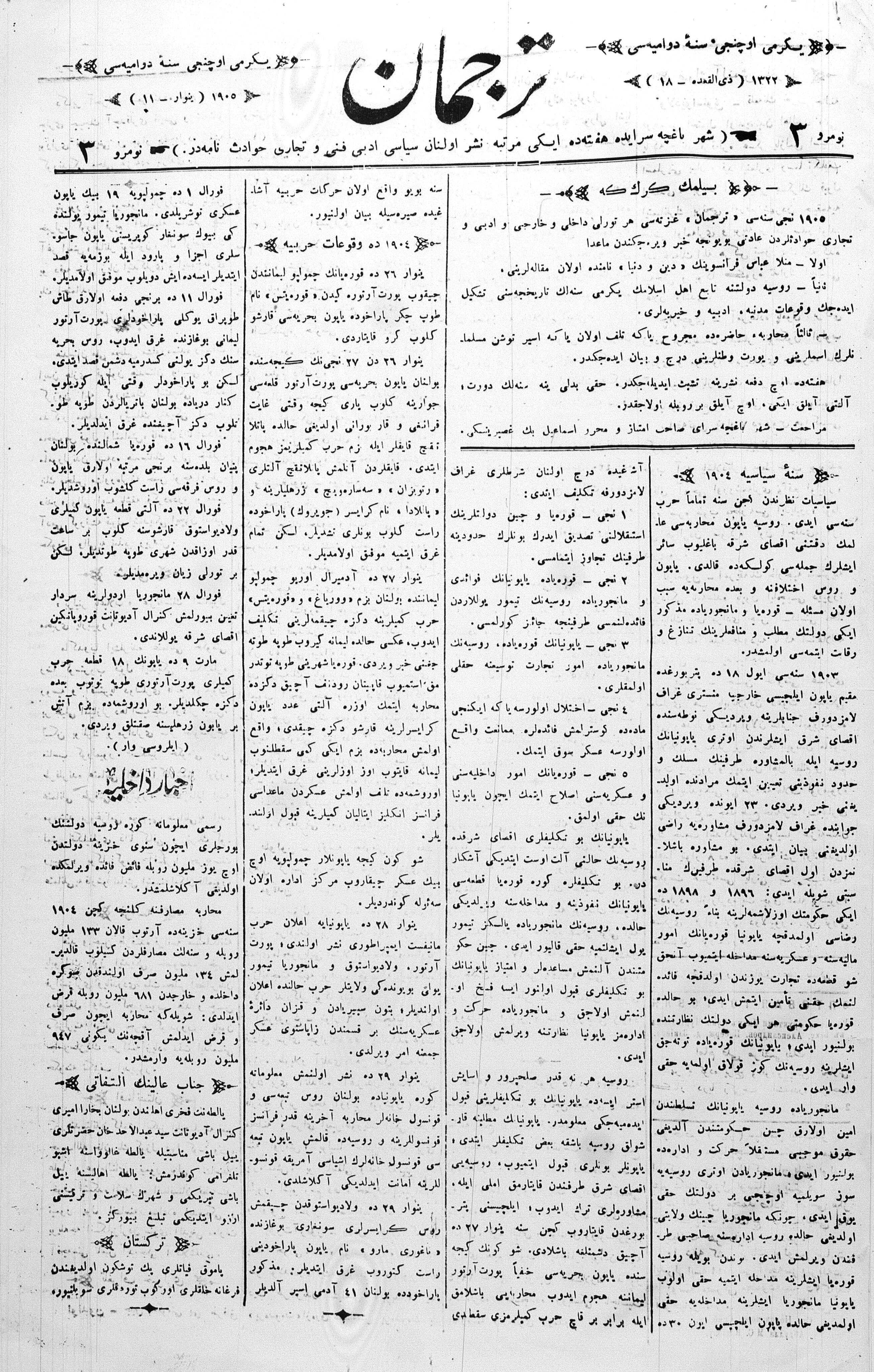 Tercüman, 11 January 1905 Year 23 No 3