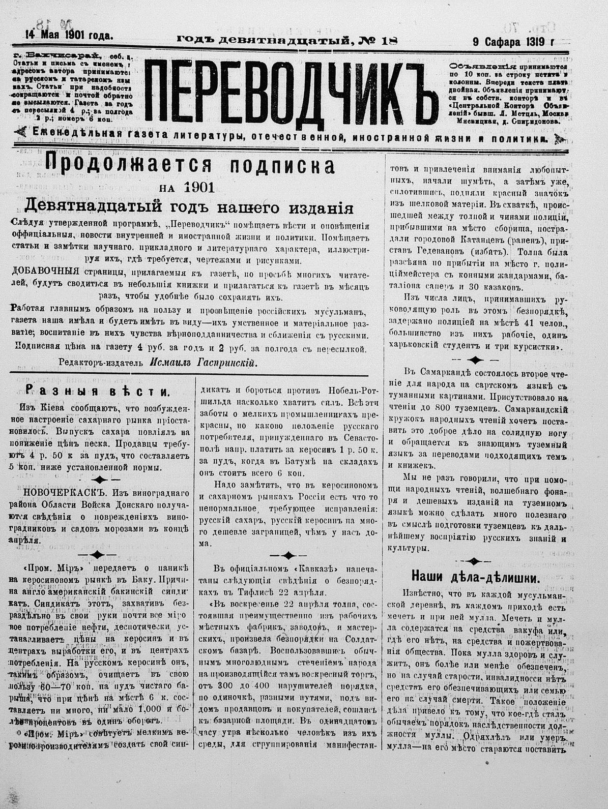 Turkish-Russian newspaper published in Crimea by İsmail Gaspıralı.