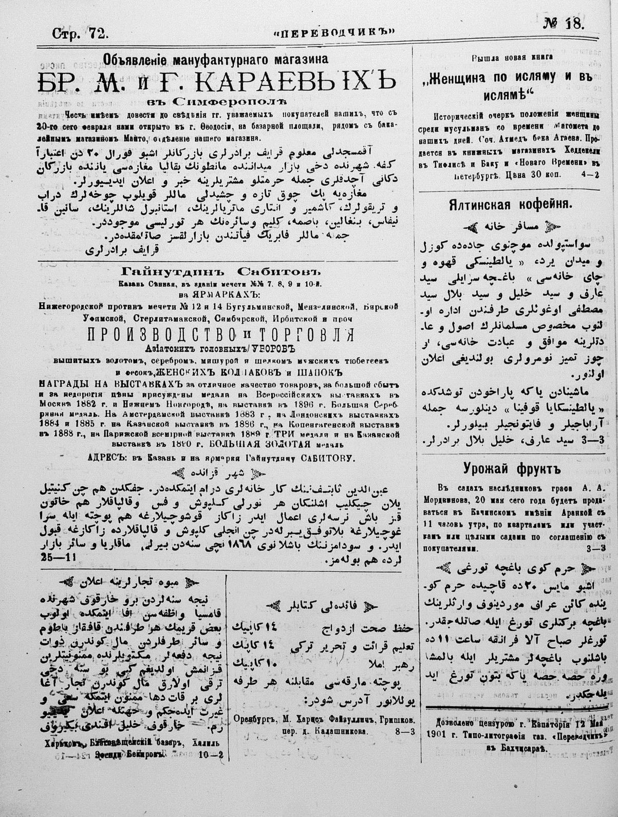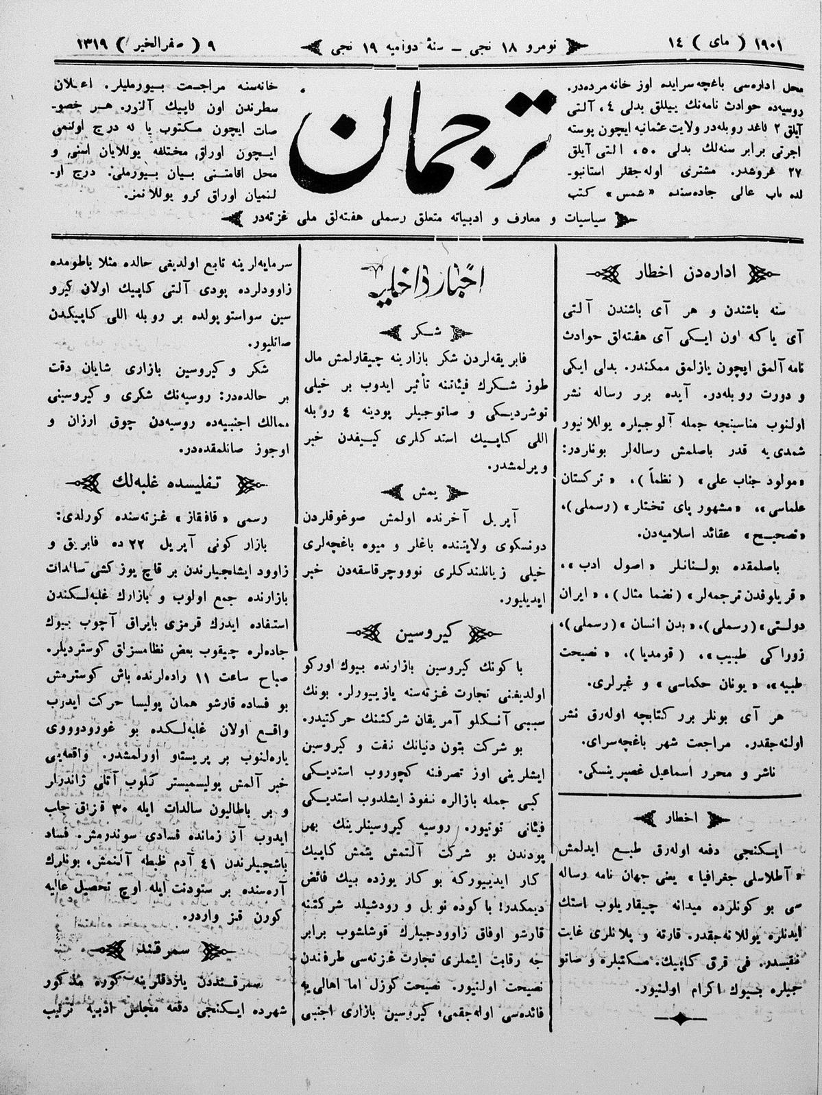 Tercüman, 14 May 1901 Year 19 No 18