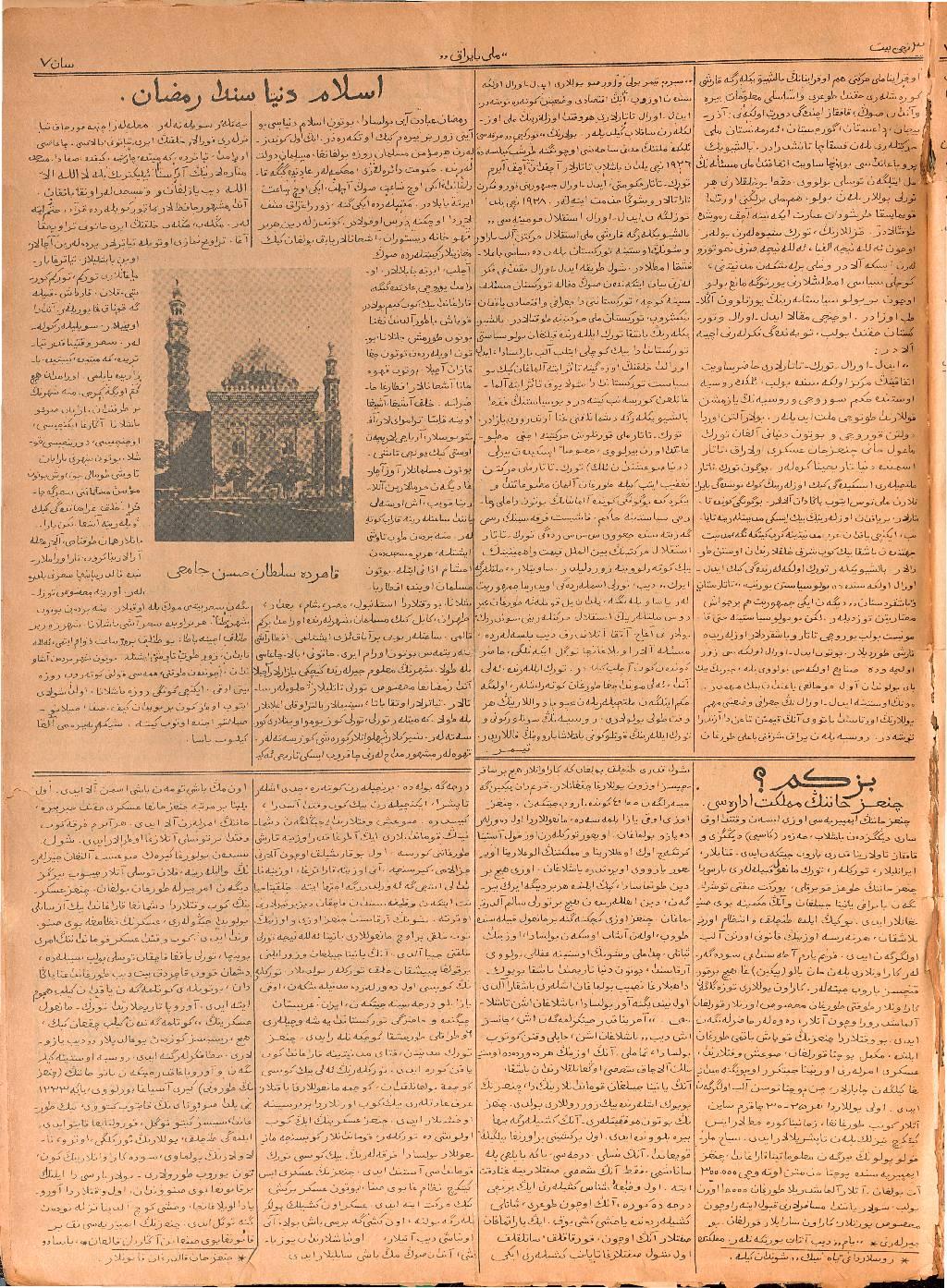 The Milli Bayrak newspaper was written in Tatar with Arabic script.