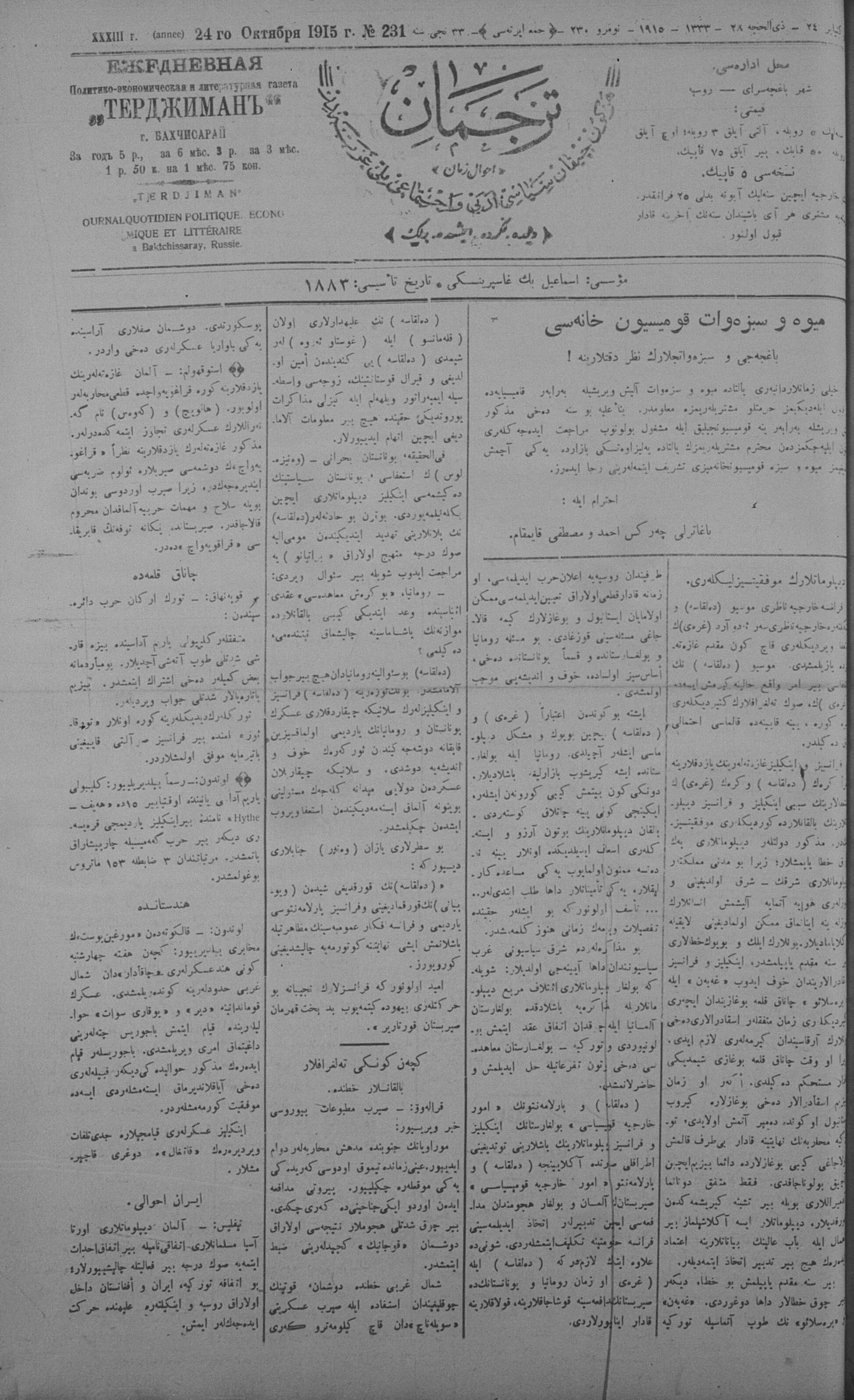 Turkish-Russian newspaper published in Crimea by İsmail Gaspıralı.