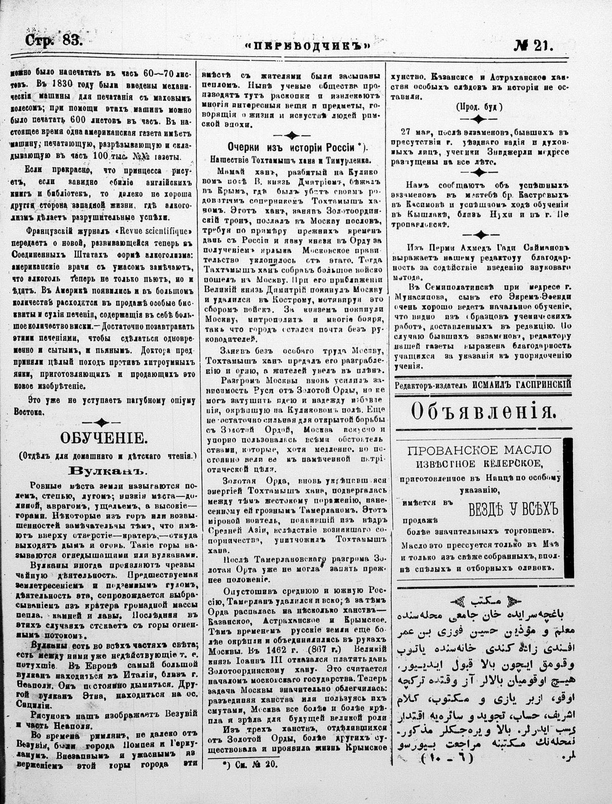 Turkish-Russian newspaper published in Crimea by İsmail Gaspıralı.