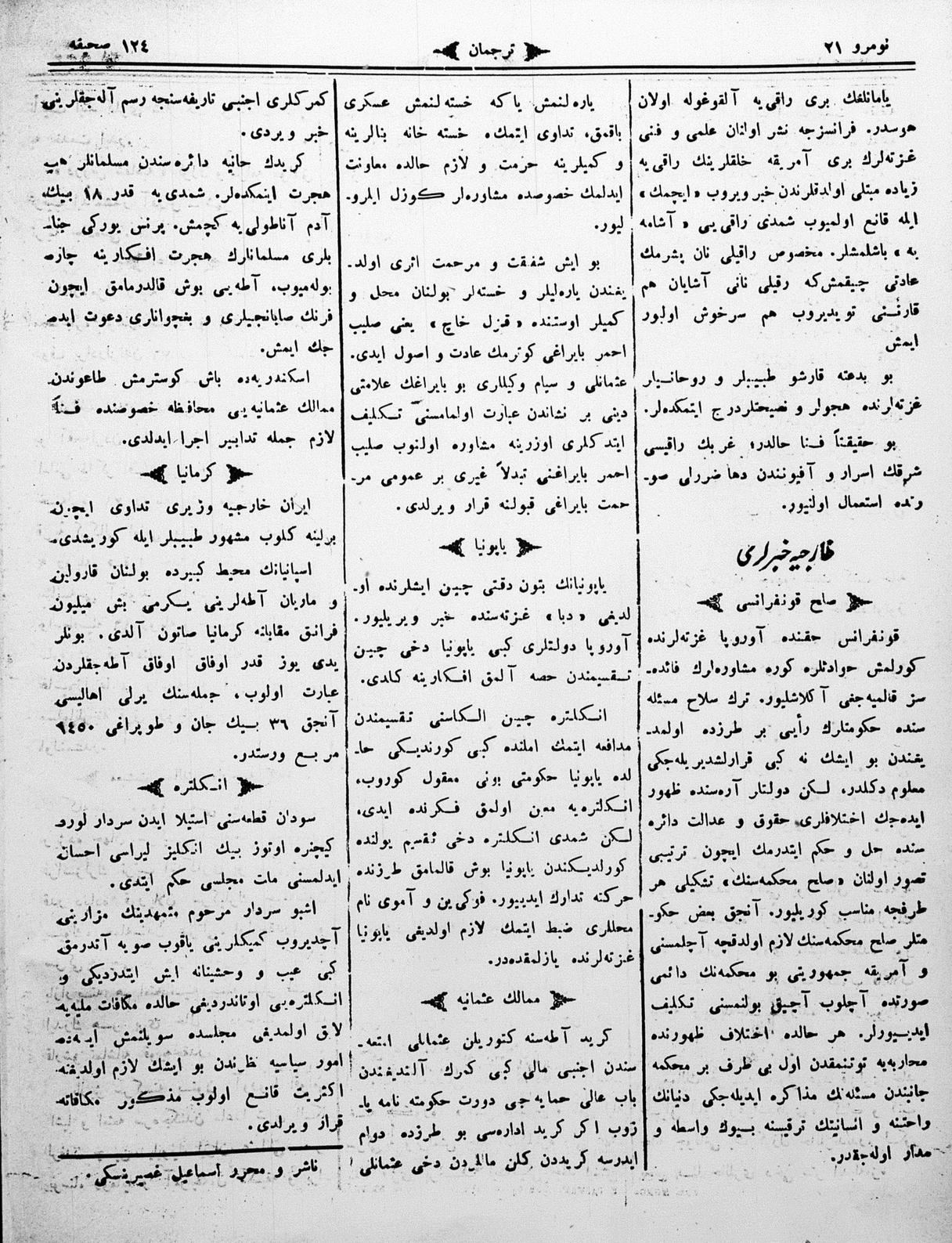 The name of the newspaper changed to Tercüman-ı Ahval-i Zaman in 1905. In 1909, it started to be published under its first name, Tercüman.