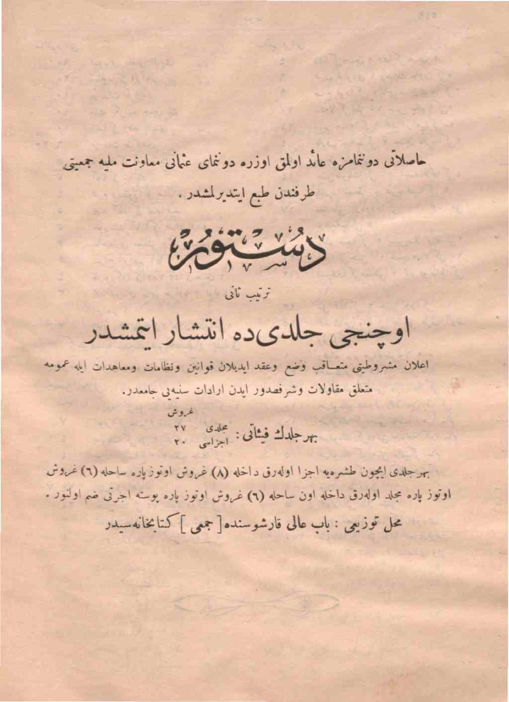 The name of the periodical was published under the following titles in different periods: Donanma: Donanma Cemiyetinin haftalık gazetesi; Donanma: istikbal denizlerdedir; Donanma: şimdilik ayda bir defa neşrolunur; Donanma: ayda bir defa neşr olunur, musavver, ahlaki, edebi, tarihi, fenni mecmuadır.