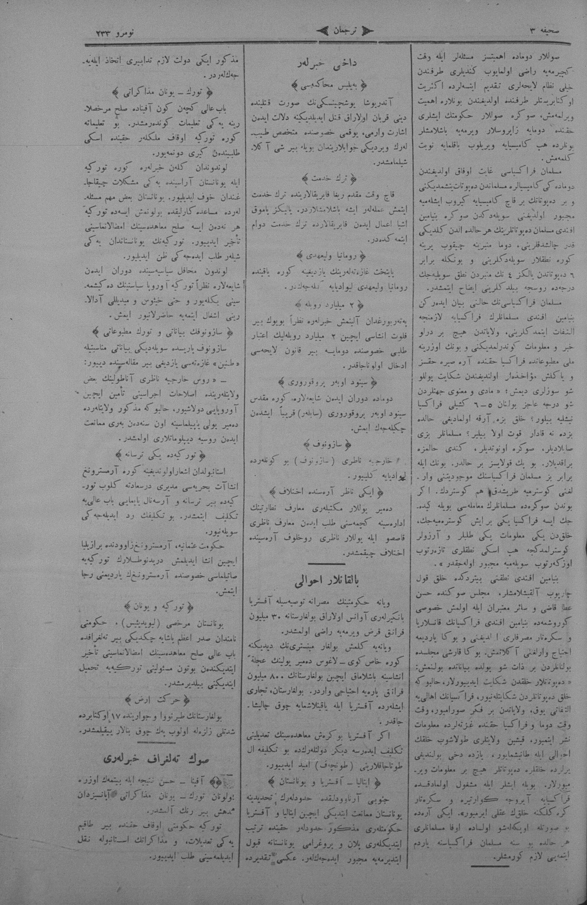 The name of the newspaper changed to Tercüman-ı Ahval-i Zaman in 1905. In 1909, it started to be published under its first name, Tercüman.